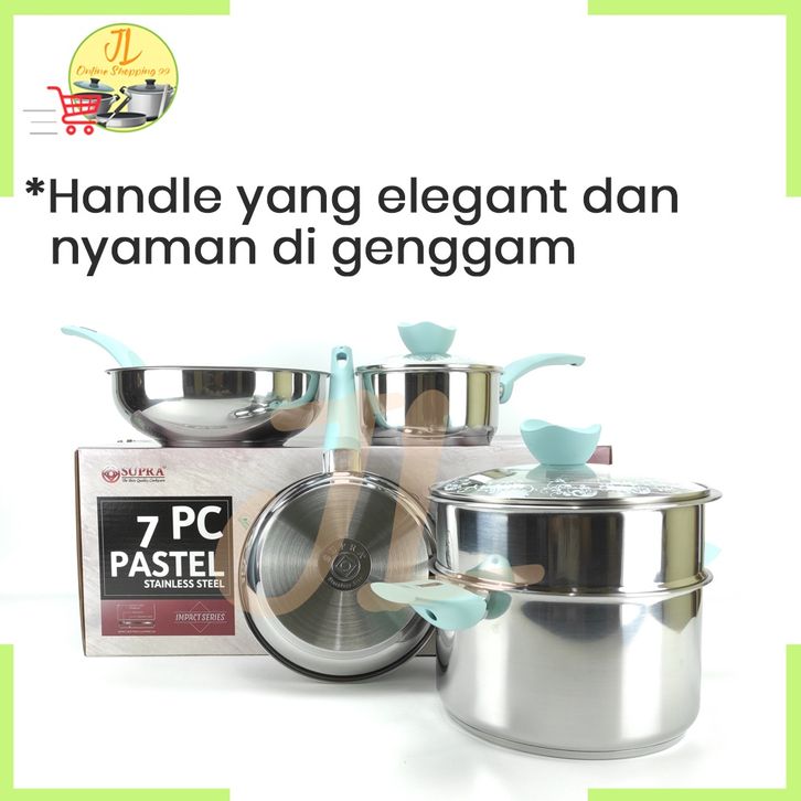 panci set lengkap Panci set 7pcs cookware set stainless impact pastel Turquoise SUPRA / Wajan set induksi