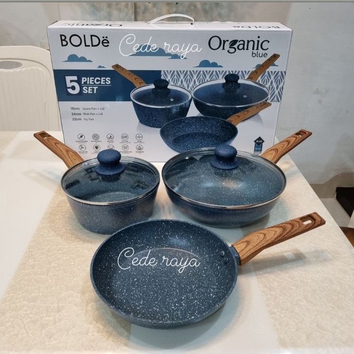 panci set lengkap panci set 3 in 1 bolde organic blue 5 pcs set