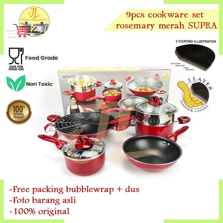 panci set lengkap Panci set / Panci set 9pcs Rosemary SUPRA / Panci Set anti lengket