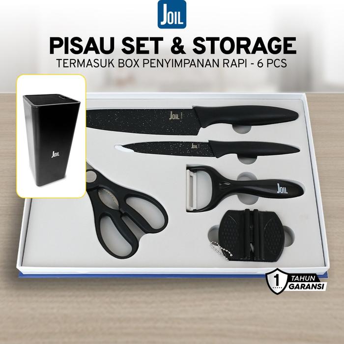 Joil Pisau Dapur Baja Utility Basic Knife Set 5 pcs Alat Pengupas Buah & Tempat Penyimpanan Stainless Steel