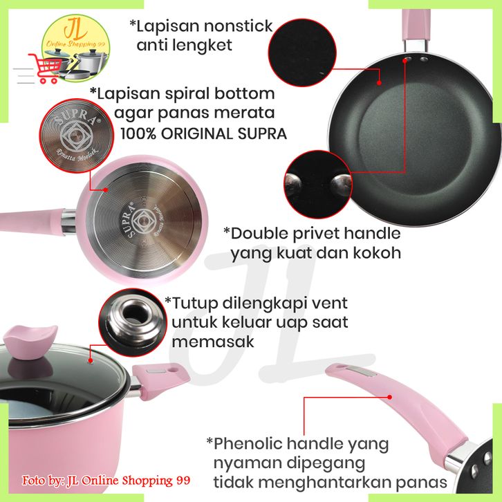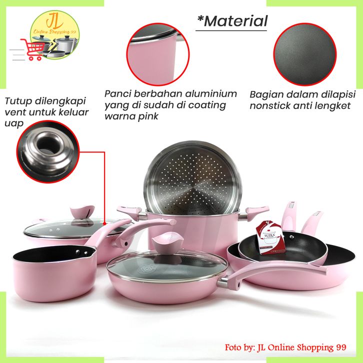 panci set lengkap Cookware set 9pcs renatta pastel PINK SUPRA / panci penggorengan anti lengket / panci set