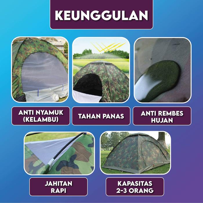 Tenda Camping Army Parasut Kapasitas 4 Orang Tenda Outdoor Waterproof