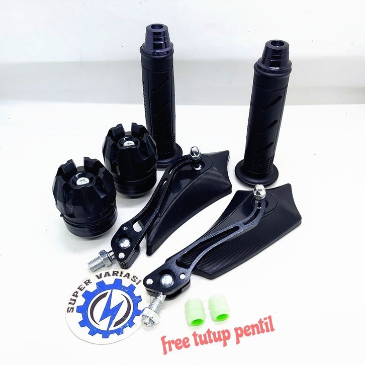 paket hemat spion batman + jalu as + handgrip + jalu stang + free tutup nyala universal motor honda