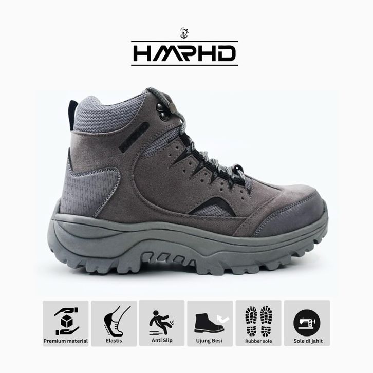 Sepatu Pria Safety Boots Mako High Grey Black Ujung Besi