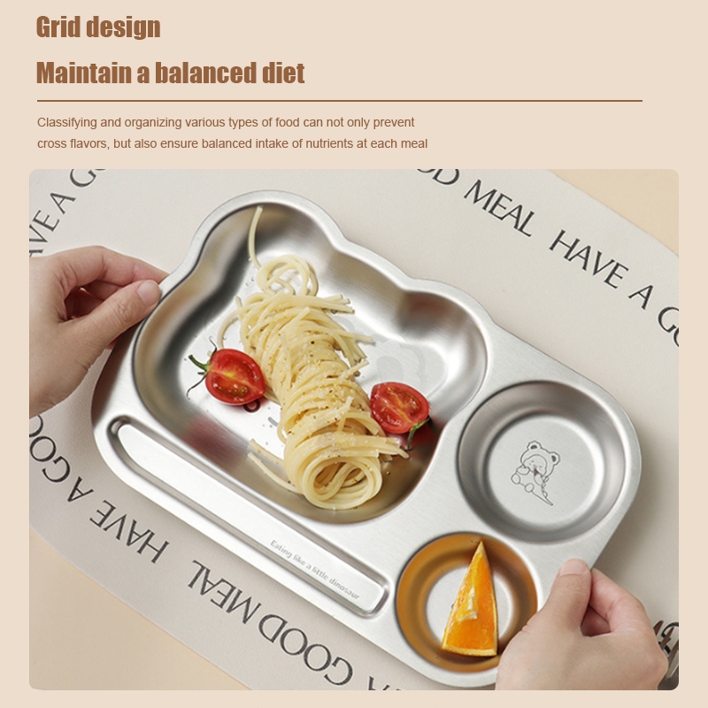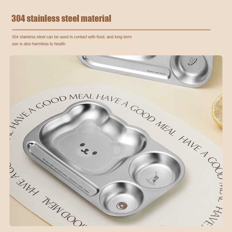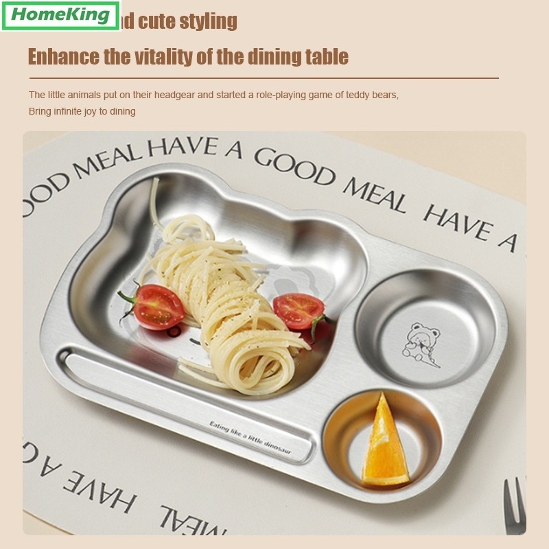 Piring Makan Anak-anak dari Baja Tahan Karat 304 Piring Gaya Lucu Piring Terbagi Hewan Lucu HomeKing