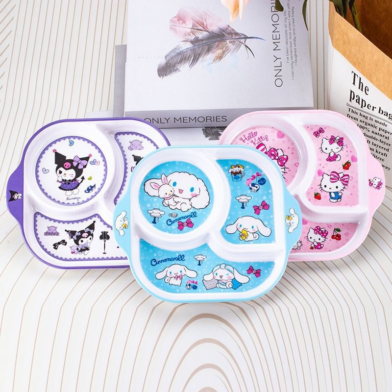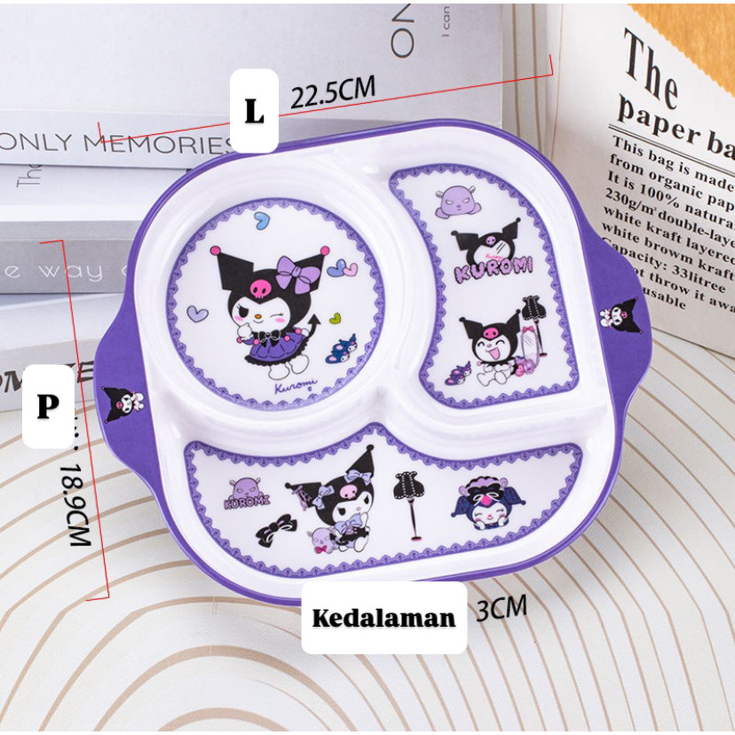 Piring Makan Anak Sekat Melamin Karakter Kuromi Spiderman Elsa Sinchan Doraemon