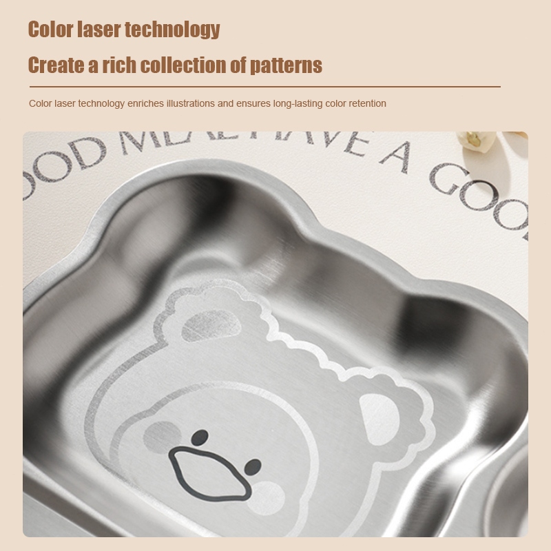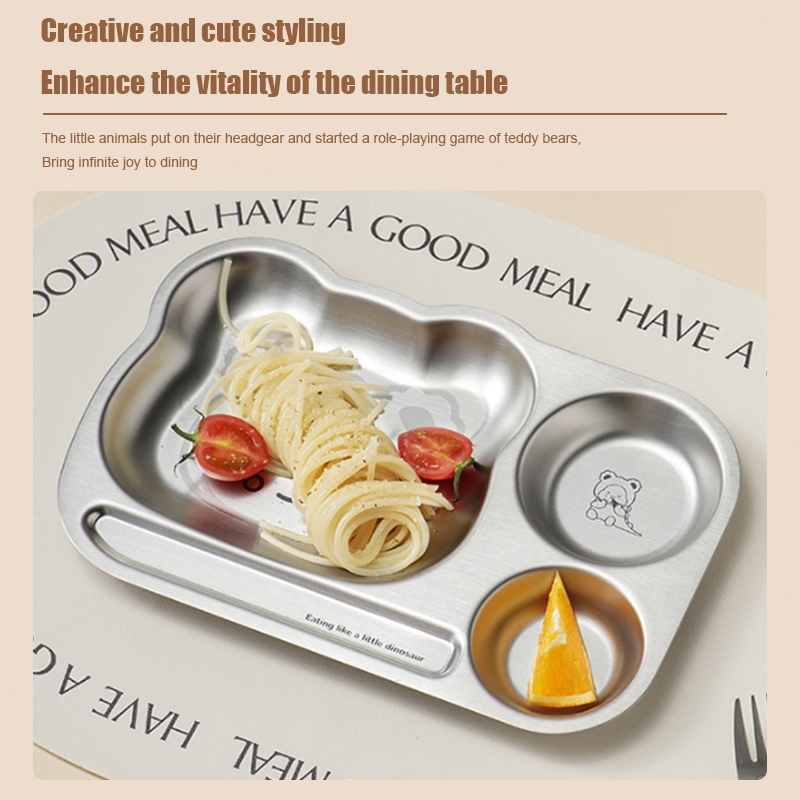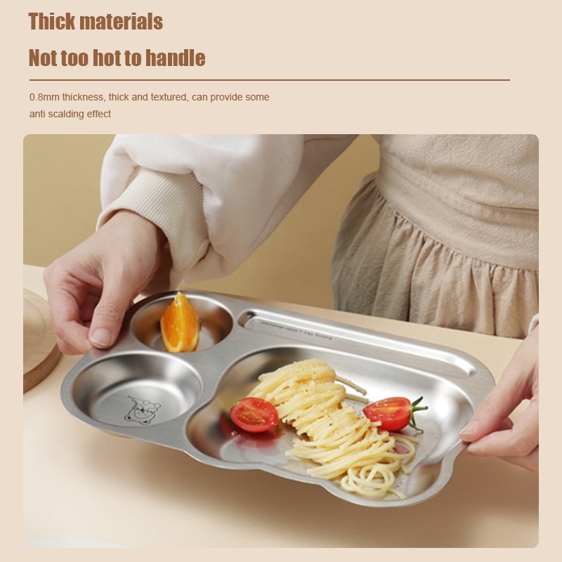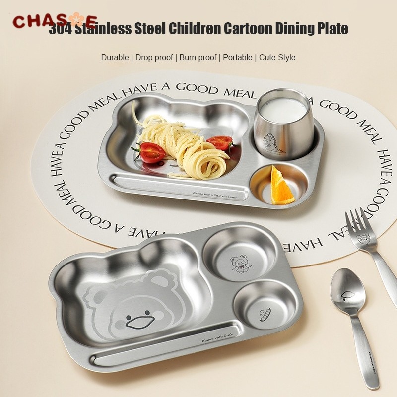 Piring Makan Anak-anak dari Baja Tahan Karat 304 Piring Gaya Lucu Piring Terbagi Hewan Lucu CHASOE