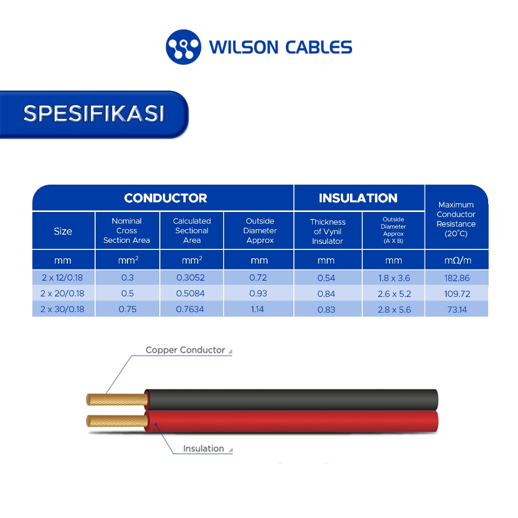 WILSON CABLES - Kabel Audio 2x0.5 mm² (2x20/0.18) 100 Meter Speaker Cord Audio - Red-Black
