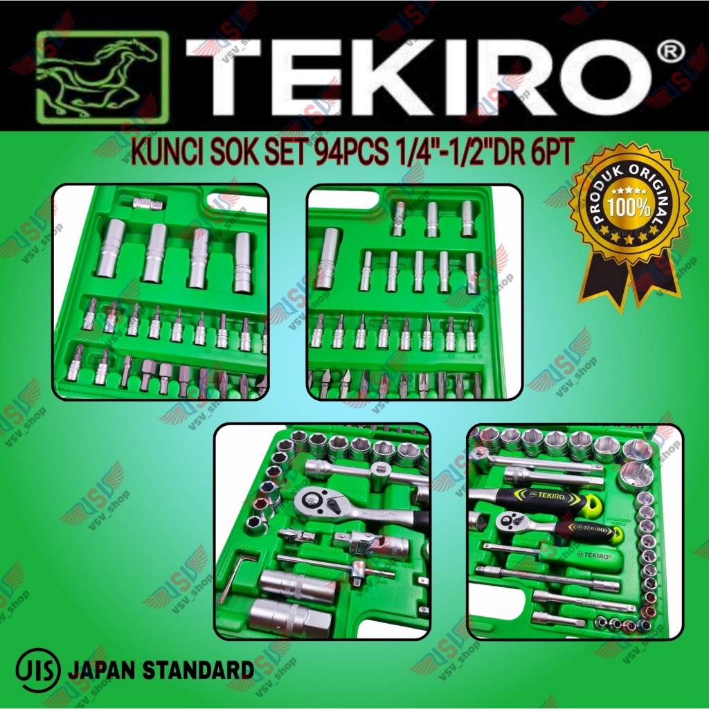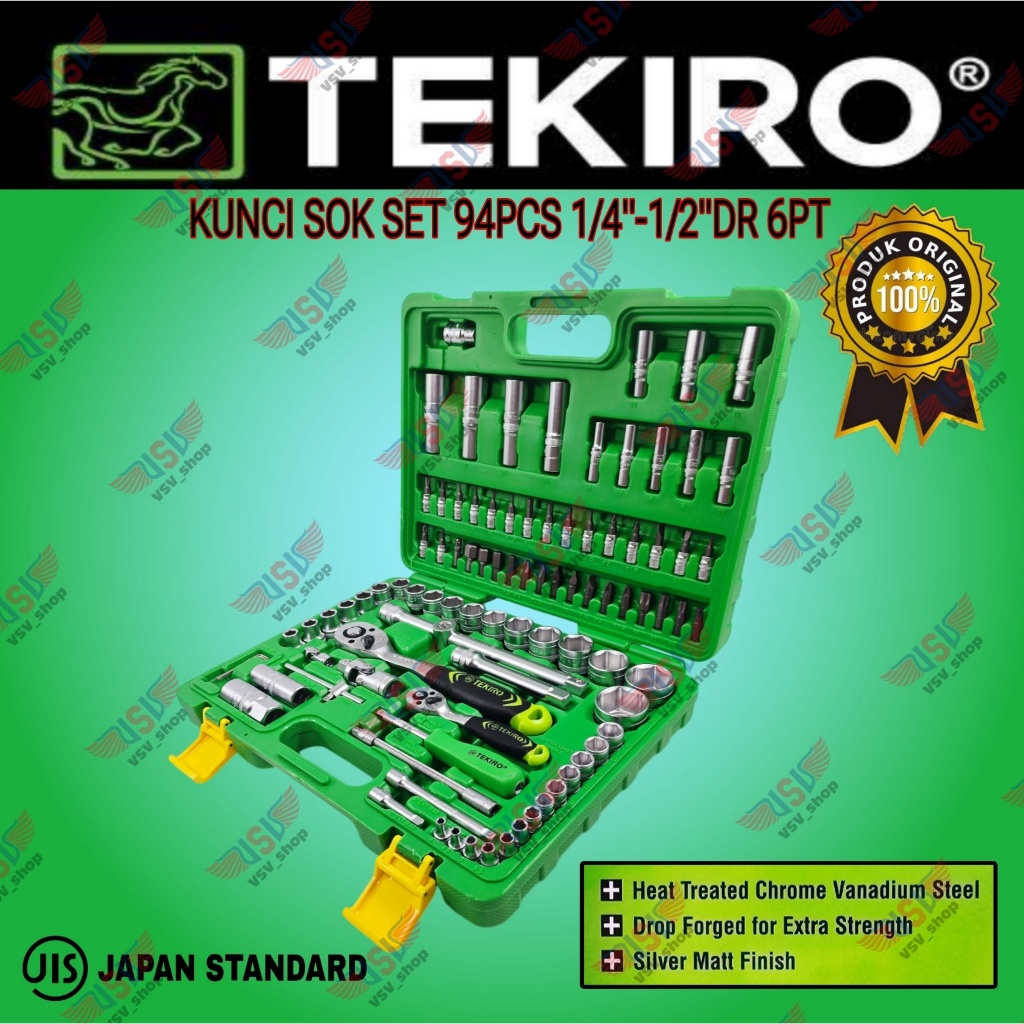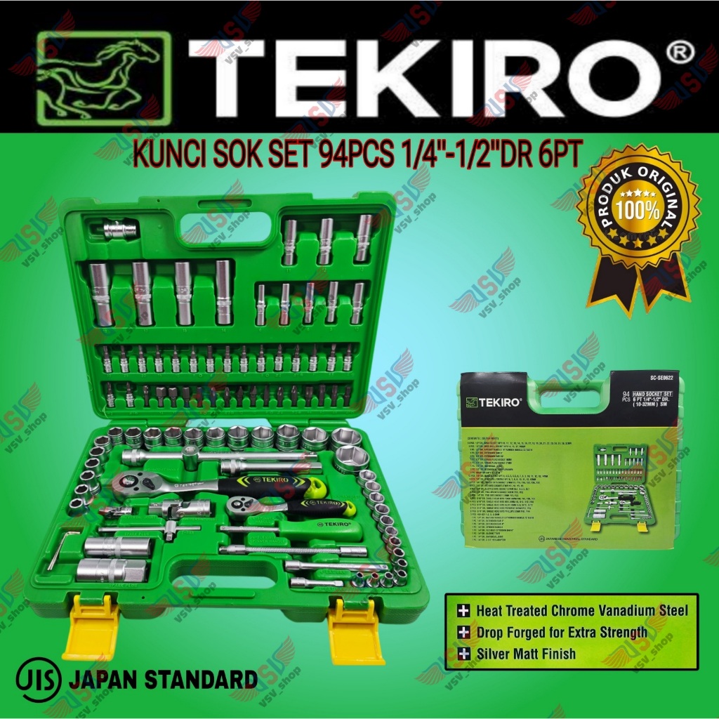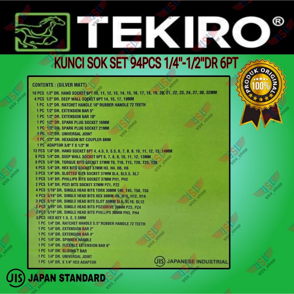 TEKIRO Kunci Sok Set 94pcs 1/4"-1/2"DR 6PT Kunci Sock Hand Socket Set