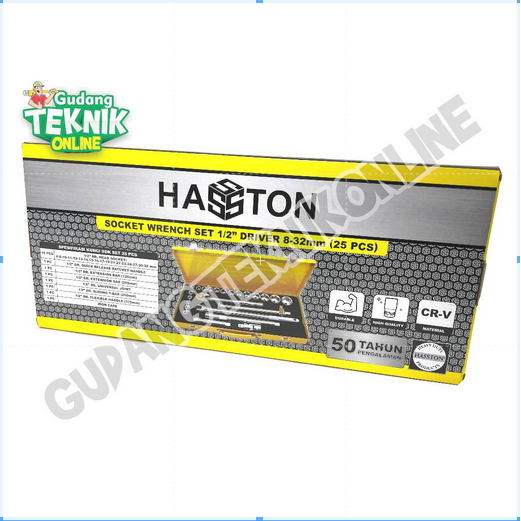 Kunci Shock 1/2" 1 Set 25pcs 6PT 12PT HASSTON / Socket Wrench 1/2 Inch 25 Pcs Kunci Sok Sock Segi 6 12 HASSTON PROHEX K