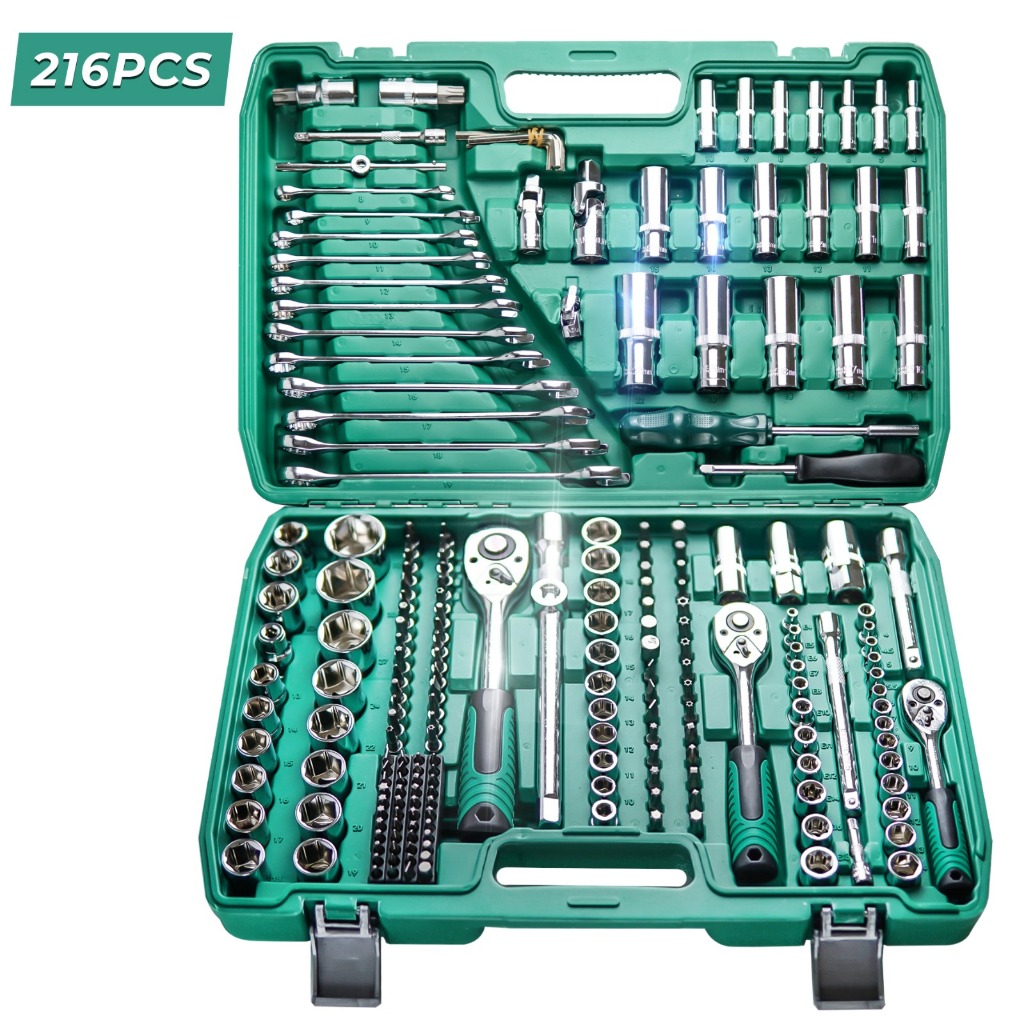 Allefix Kunci Set Koper Kombinasi Kunci Socket 216 Pcs Kunci Sok Set Kunci Shock Wrench