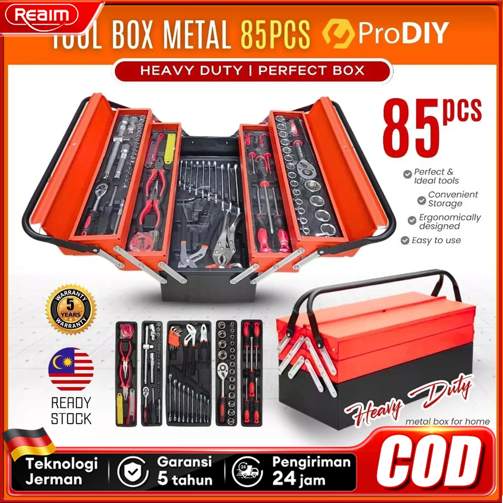 Reaim Tool Kit 85 Pcs Alat Bengkel Tool Kit Kunci Sok Set Pekerjaan Otomotif Pekerjaan Mobil Hand Toolset / Tool Kit Set