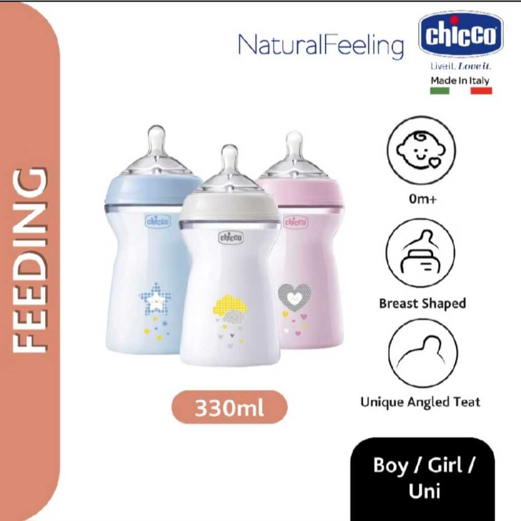 Chicco Natural Feeling Anti-Colic Feeding Bottle PP 6M+ 330ml / Botol Dot Bayi / Botol Dot Anak / Botol Susu Bayi / Botol Susu Anak