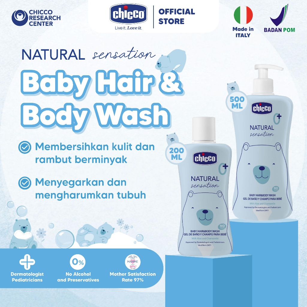 CHICCO Natural Sensation Baby Hair & Body Wash / shampo dan sabun bayi tidak pedih di mata