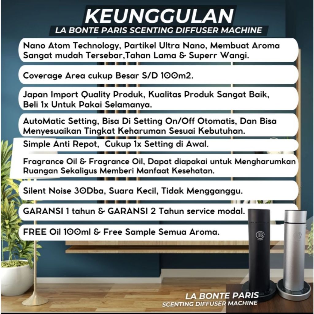 La Bonte Scenting Diffuser Machine Pengharum Aromaterapi Ruangan Elektrik Otomatis 100m2