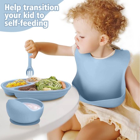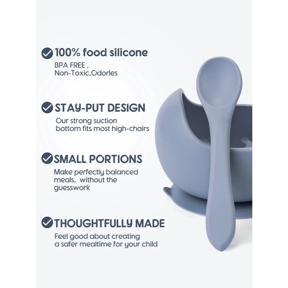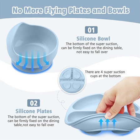 COOKGLORY Set Piring Makan Bayi Silikon - Piring Silikon Bebas BPA & Set Makan Penting