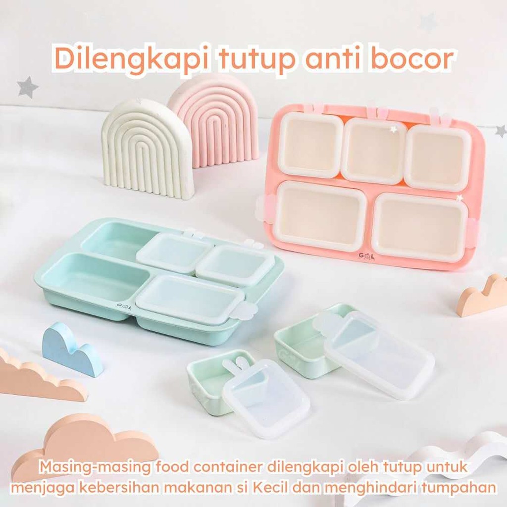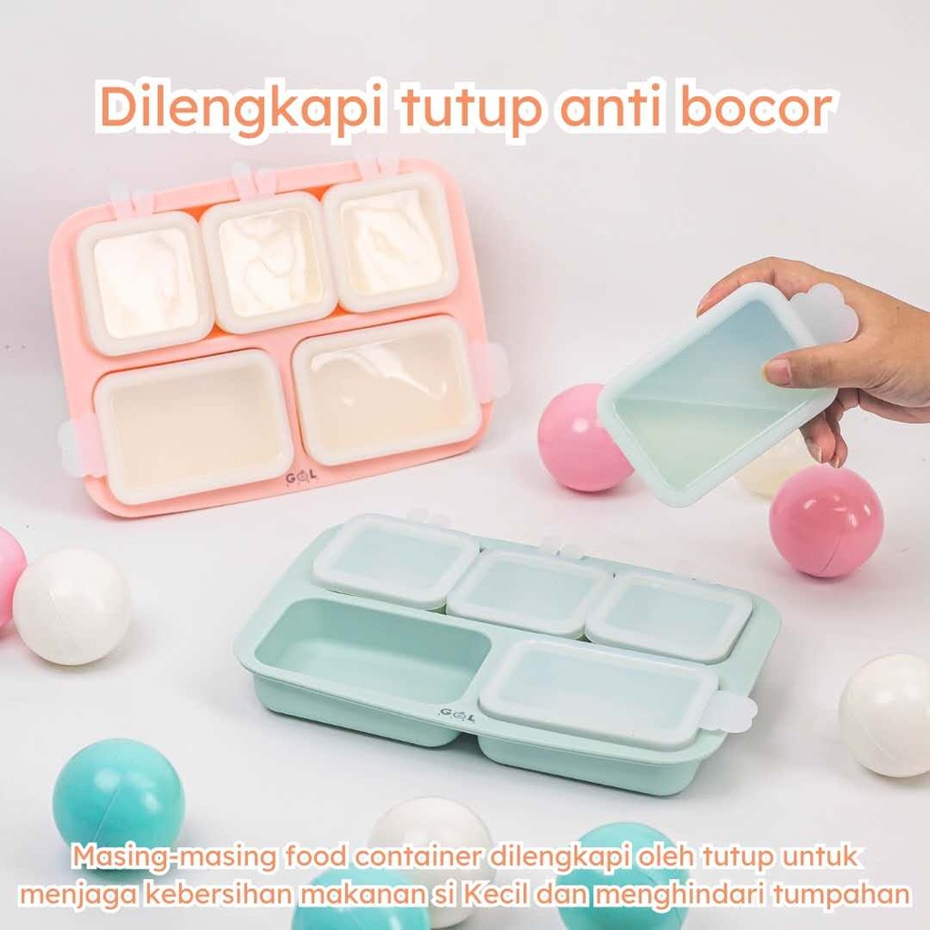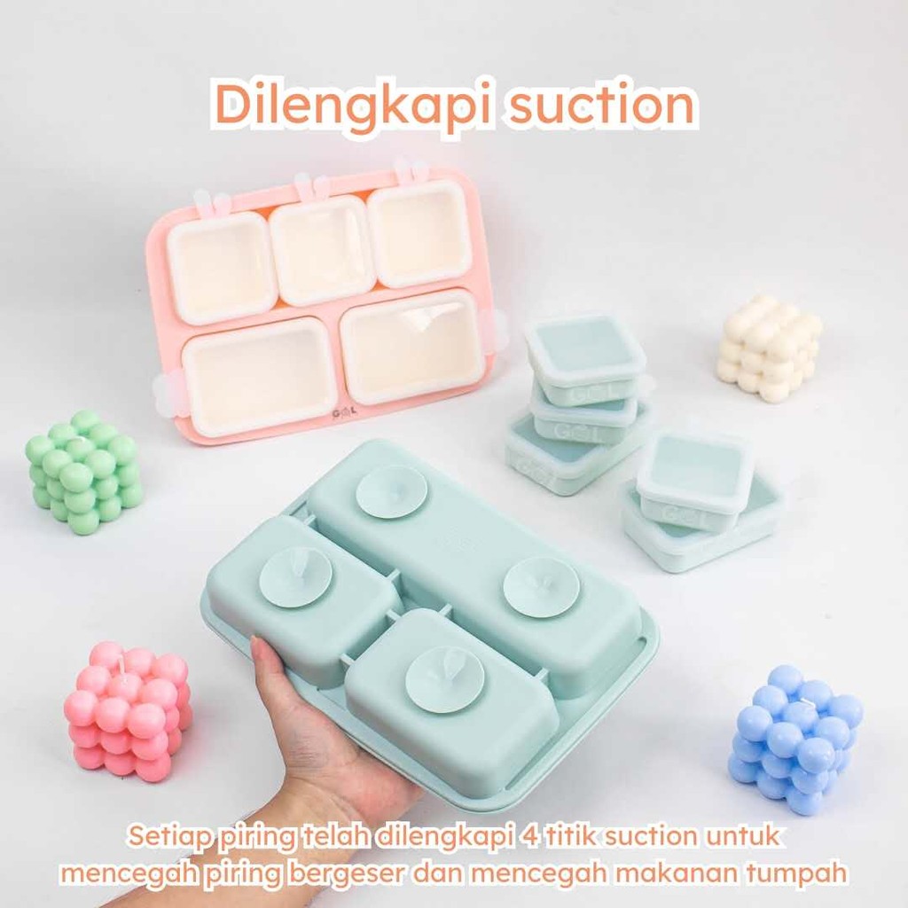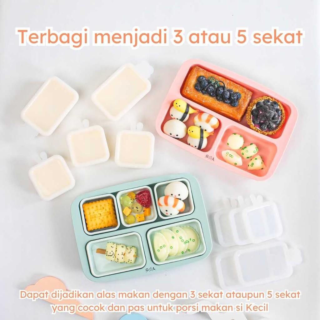 GOL Baby Piring Silikon Bayi 6 in 1 Divided Silicone Suction Plate Food Container Ice Tray with Lid Piring Makan Anak Ba