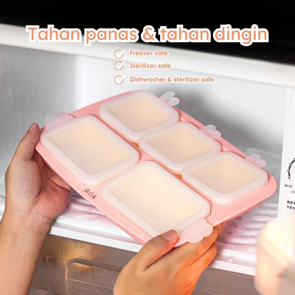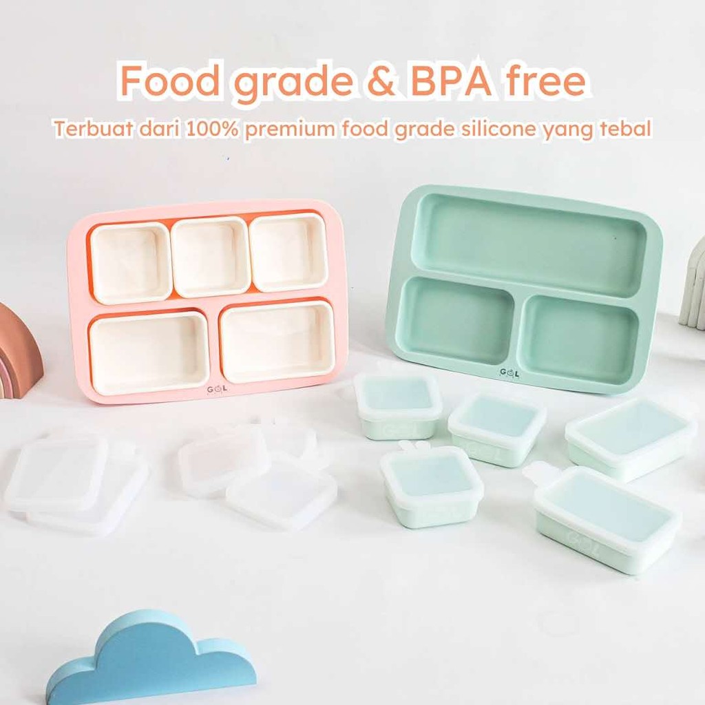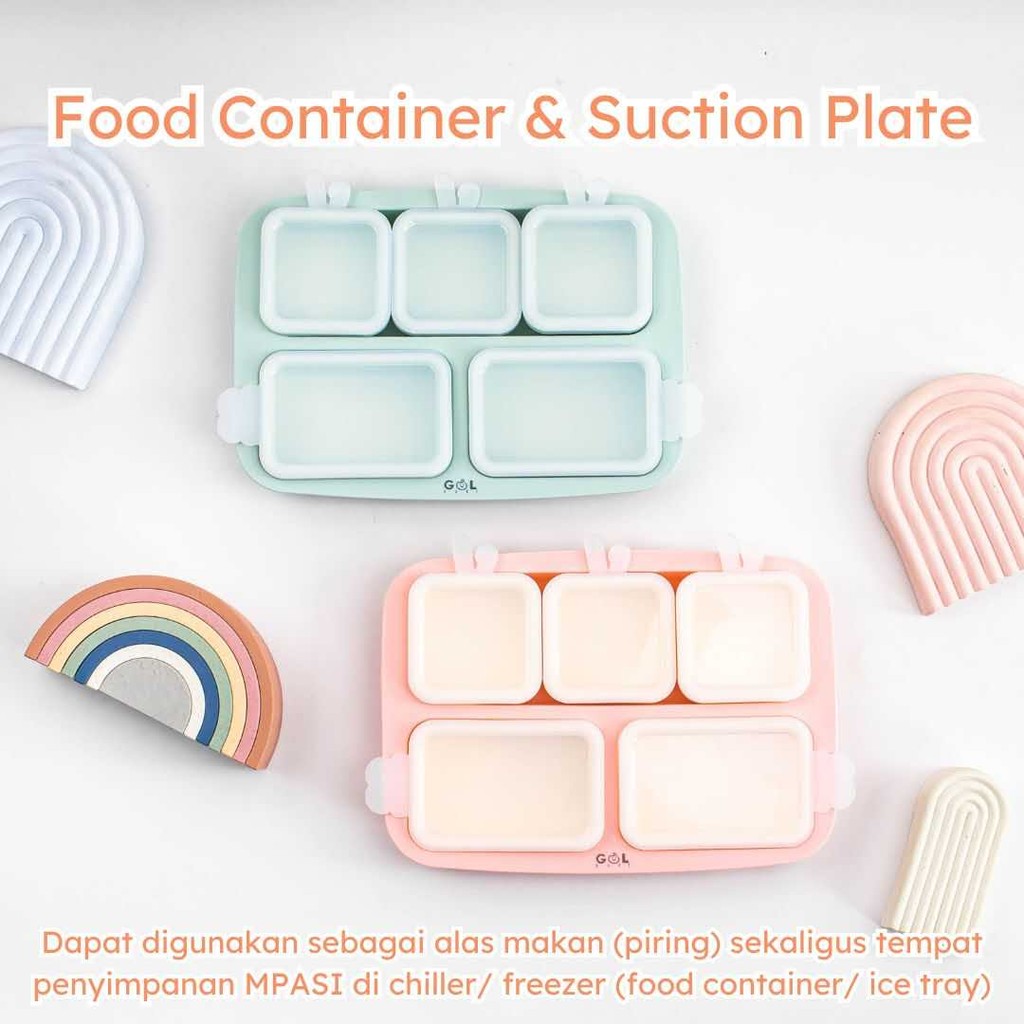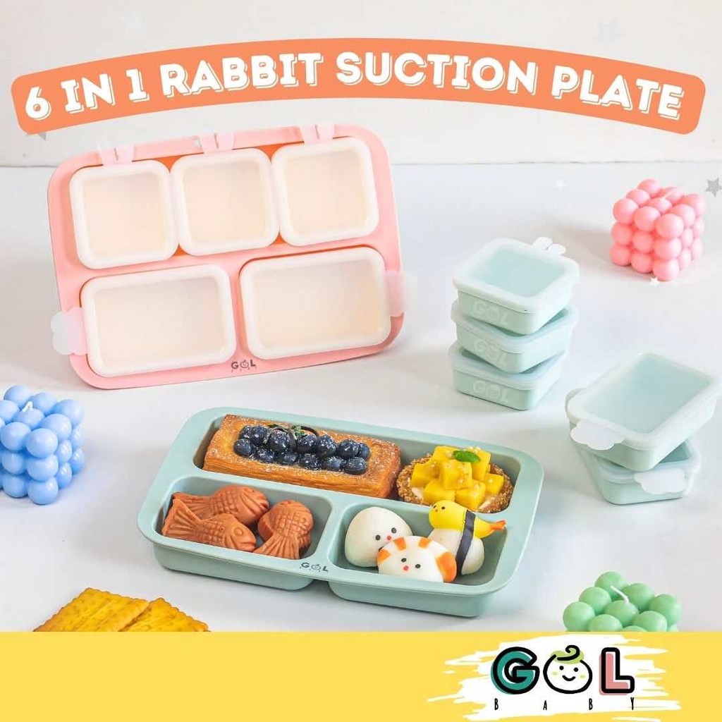 GOL Baby Piring Silikon Bayi 6 in 1 Divided Silicone Suction Plate Food Container Ice Tray with Lid Piring Makan Anak Ba