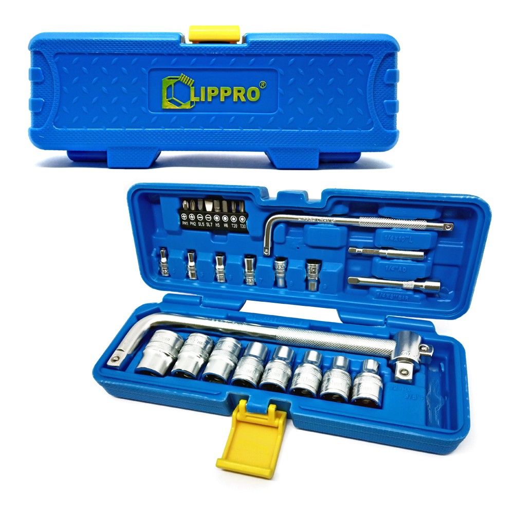 LIPPRO 3338MB KUNCI SOK SET 28 PCS 6PT BOX PLASTIK 1-2 & 1-4 DR SOCKET