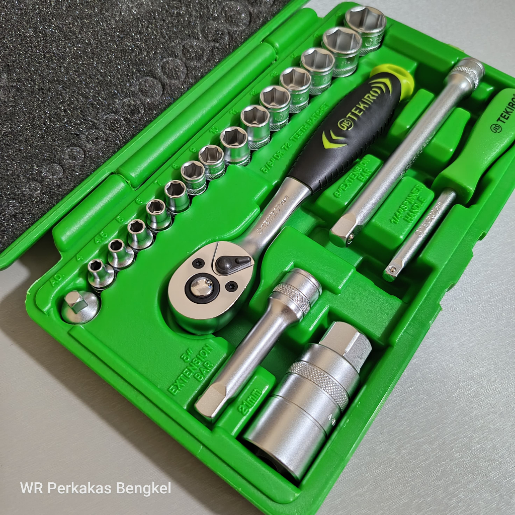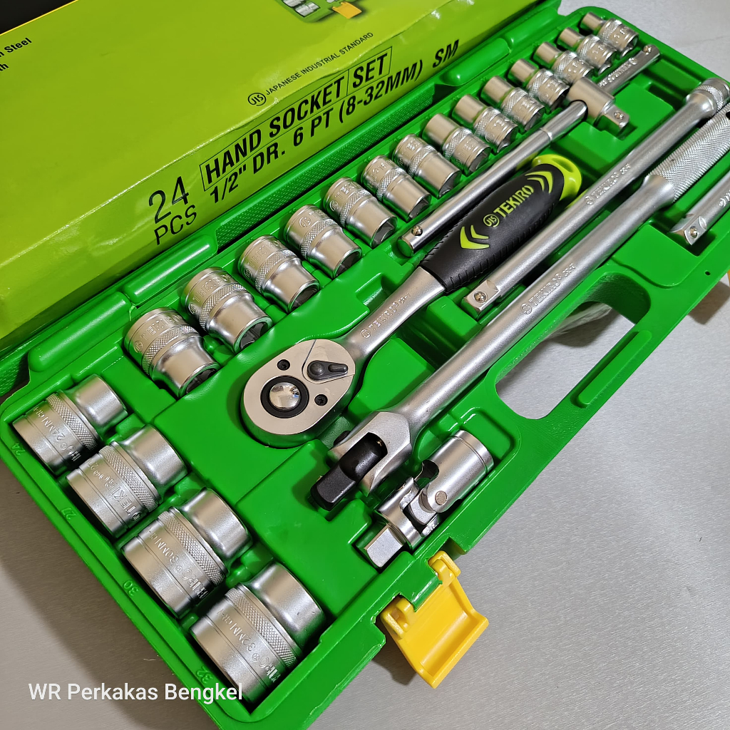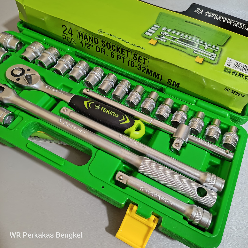 TEKIRO Kunci Shock Sok Set 8 Sampai 32 Mm Hand Socket 24 Pcs 1/2 6 Pt 1 Box Plastik - 1 Paket Alat Bengkel Lengkap Kunci