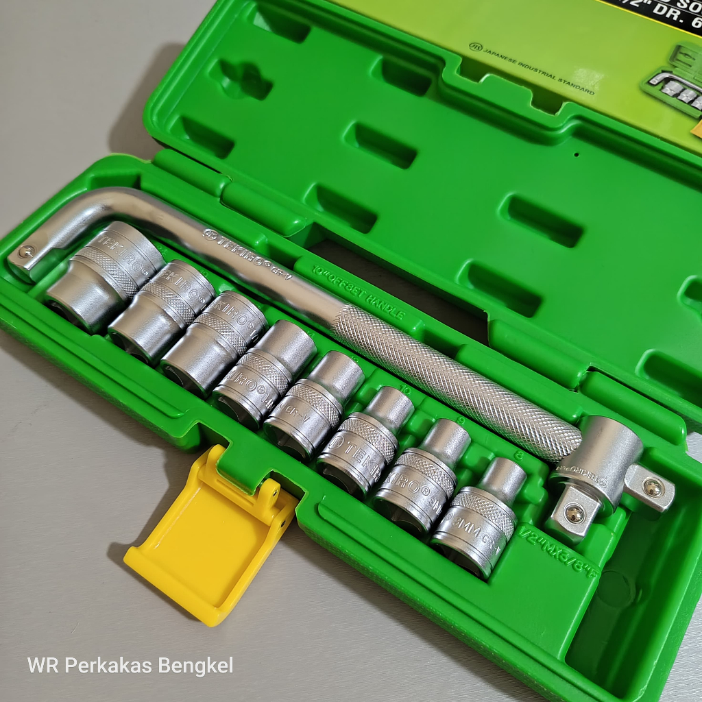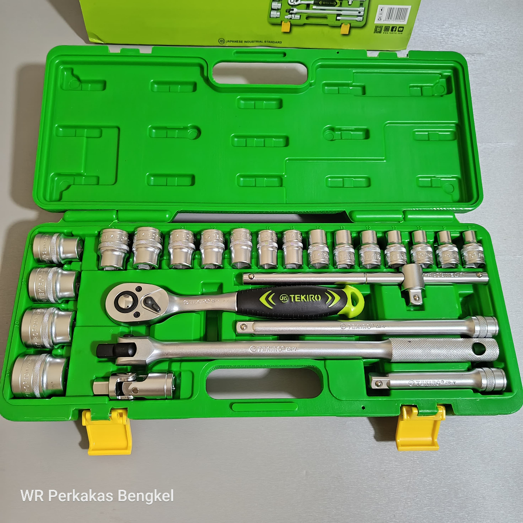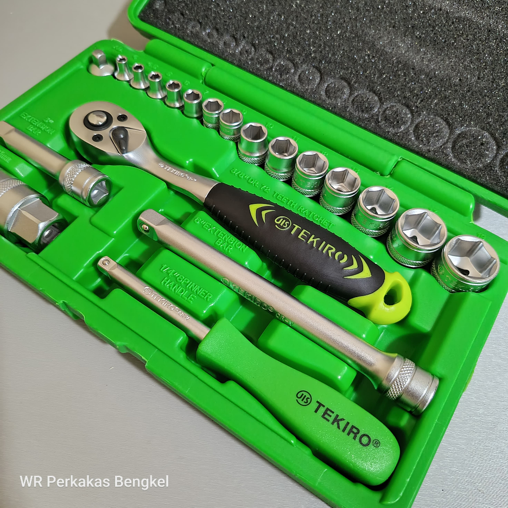 TEKIRO Kunci Shock Sok Set 8 Sampai 32 Mm Hand Socket 24 Pcs 1/2 6 Pt 1 Box Plastik - 1 Paket Alat Bengkel Lengkap Kunci