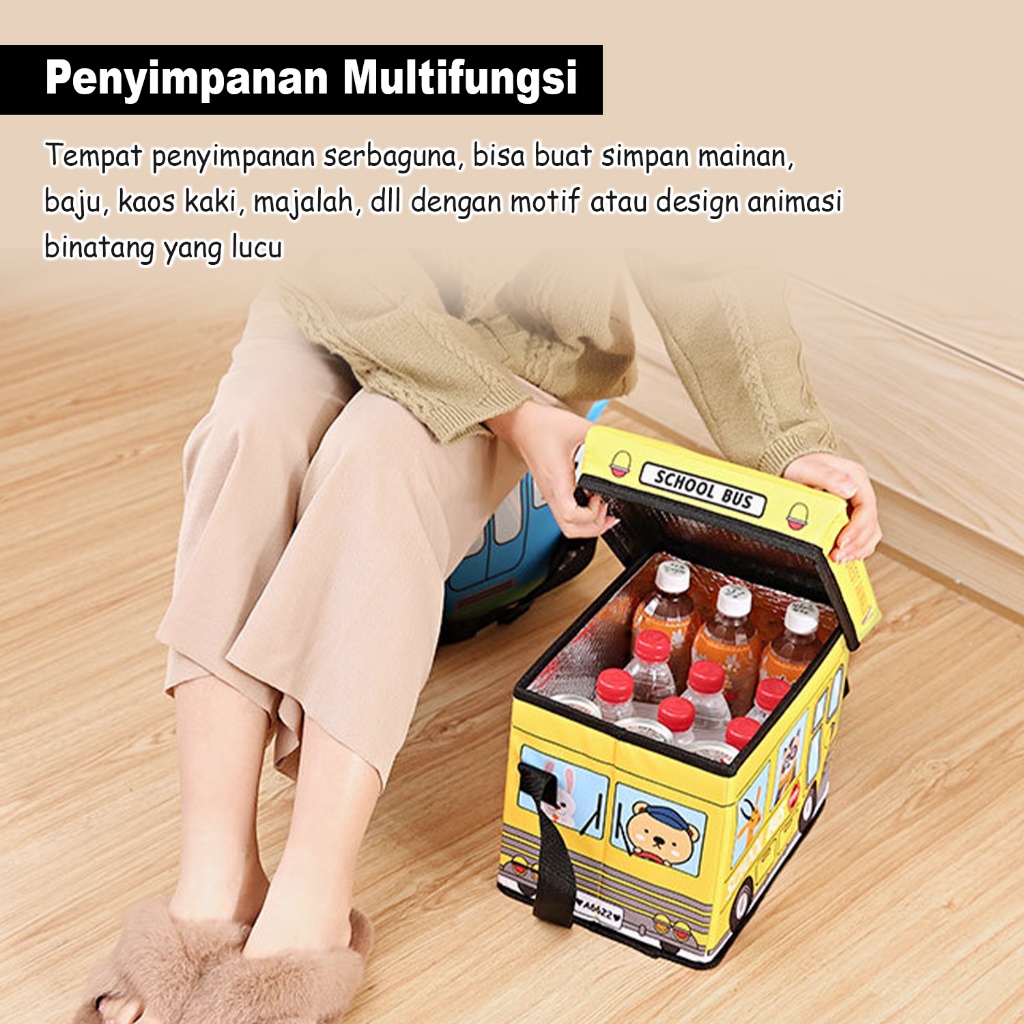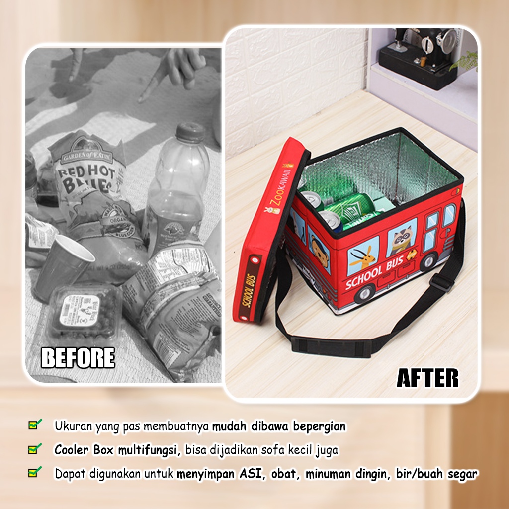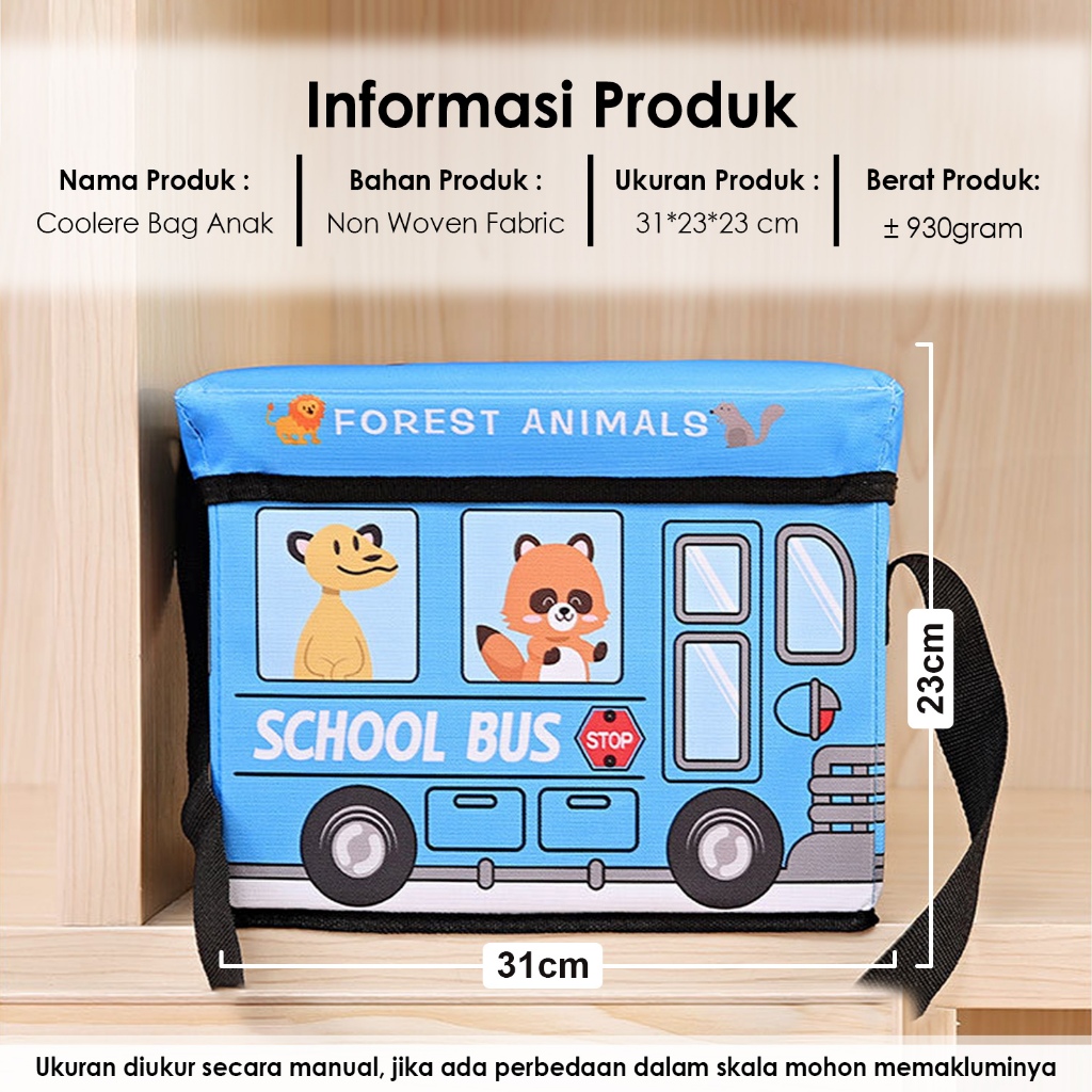 Cooler Bag Anak Lucu Motif School Bus | Tas Bekal Anti Bocor Piknik Makan Minum Dingin - Y25A1