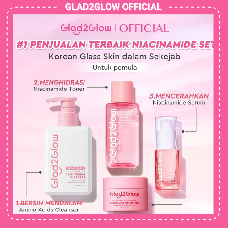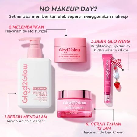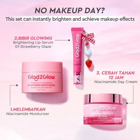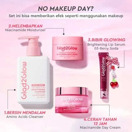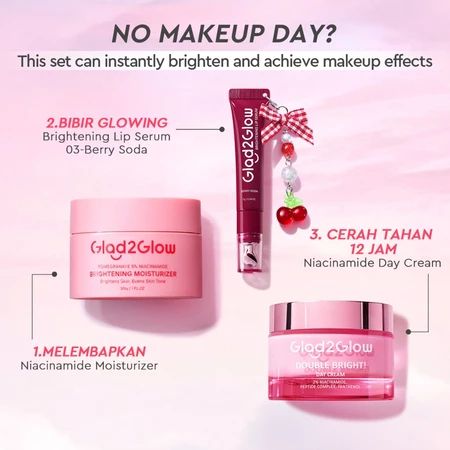 [Mall] Glad 2 Glow Official Glad2Glow Day & Night Renew Moisturizer+Serum Set Brightening 10%Niacinamide Eksfoliasi