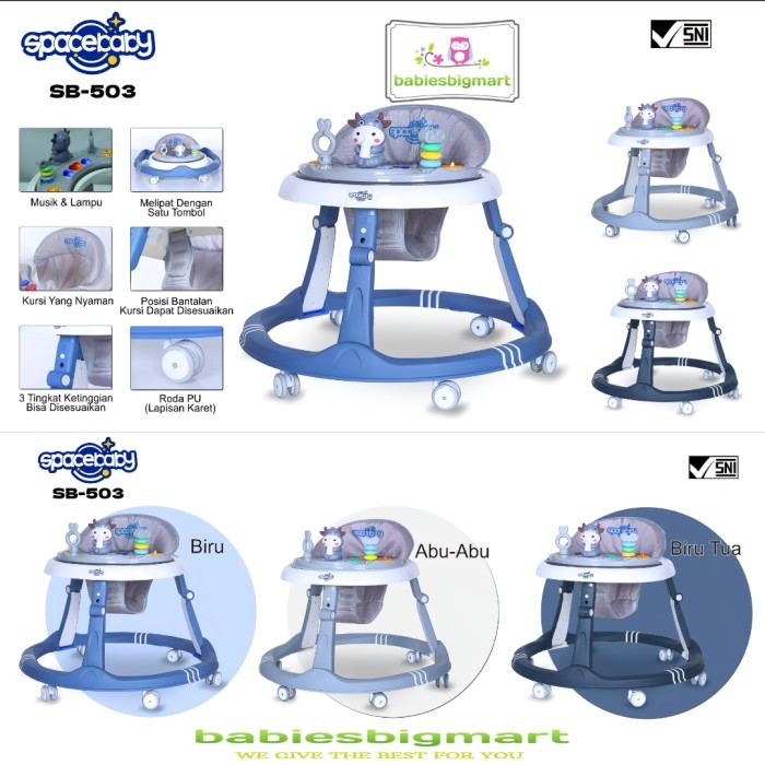 Baby Walker Spacebaby SB 503 Ada Musik Melody Bisa Lipat Alat Bantu Jalan Babywalker