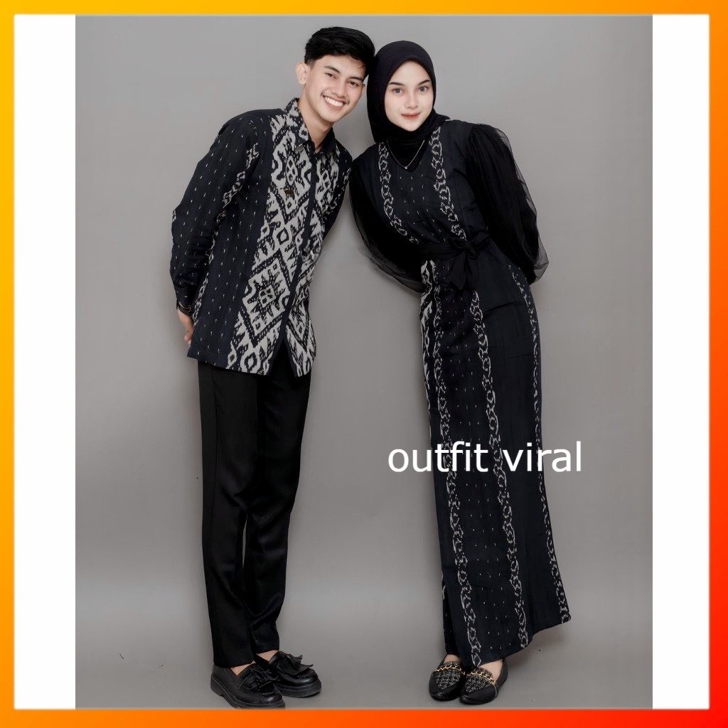 BAJU TENUN COUPLE NEW PADMA BLACK DRESS DAN KEMEJA OUTFIT VIRAL
