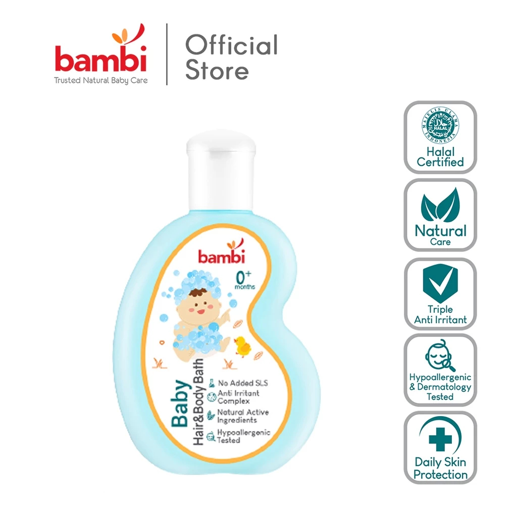 Bambi Baby Hair & Body Bath 2 in 1 100ml 100ML 200ml 200ML | Sabun & Shampoo Untuk Kulit Bayi Normal - Sensitif | PH Balance