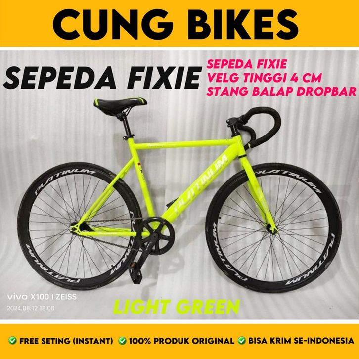 Sepeda Fixie Platinum Sport Frame Besi 700C Velg Tinggi Torpedo stang balap cung bikes