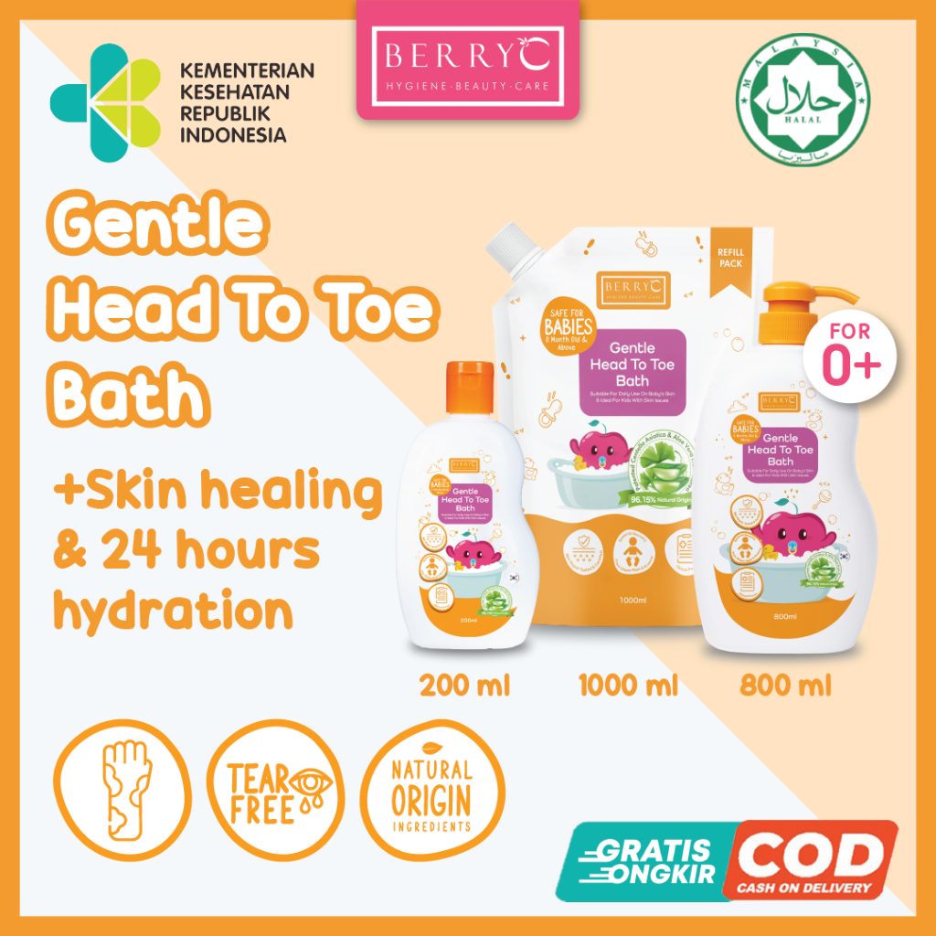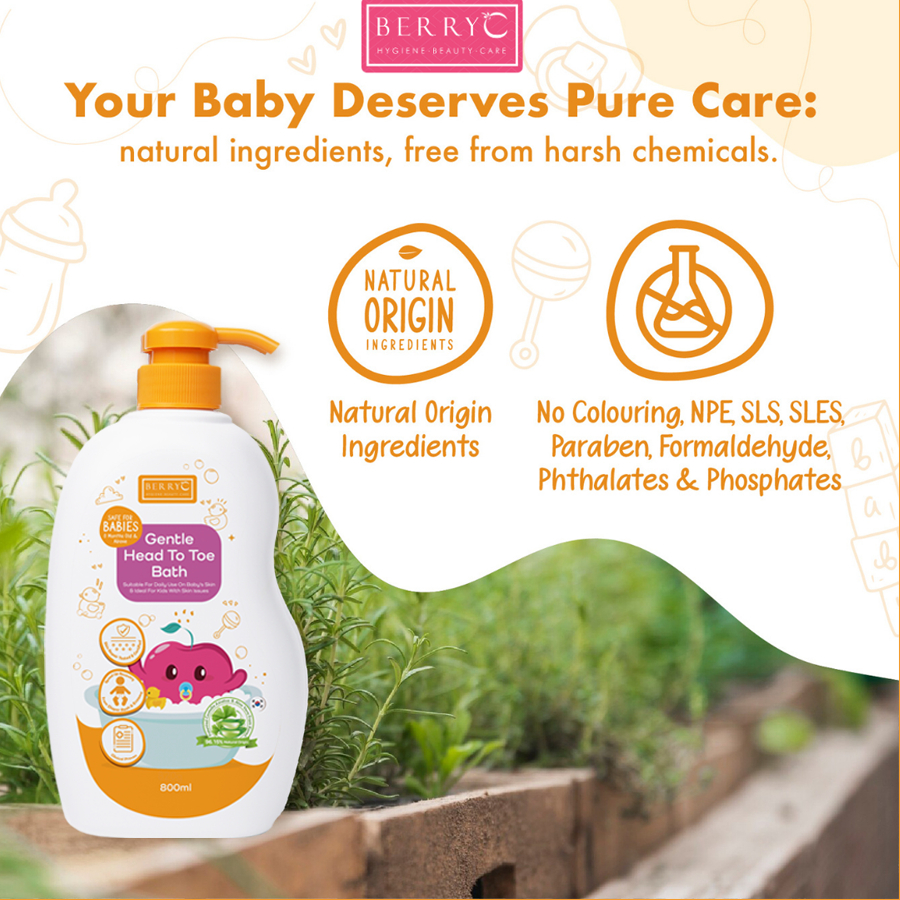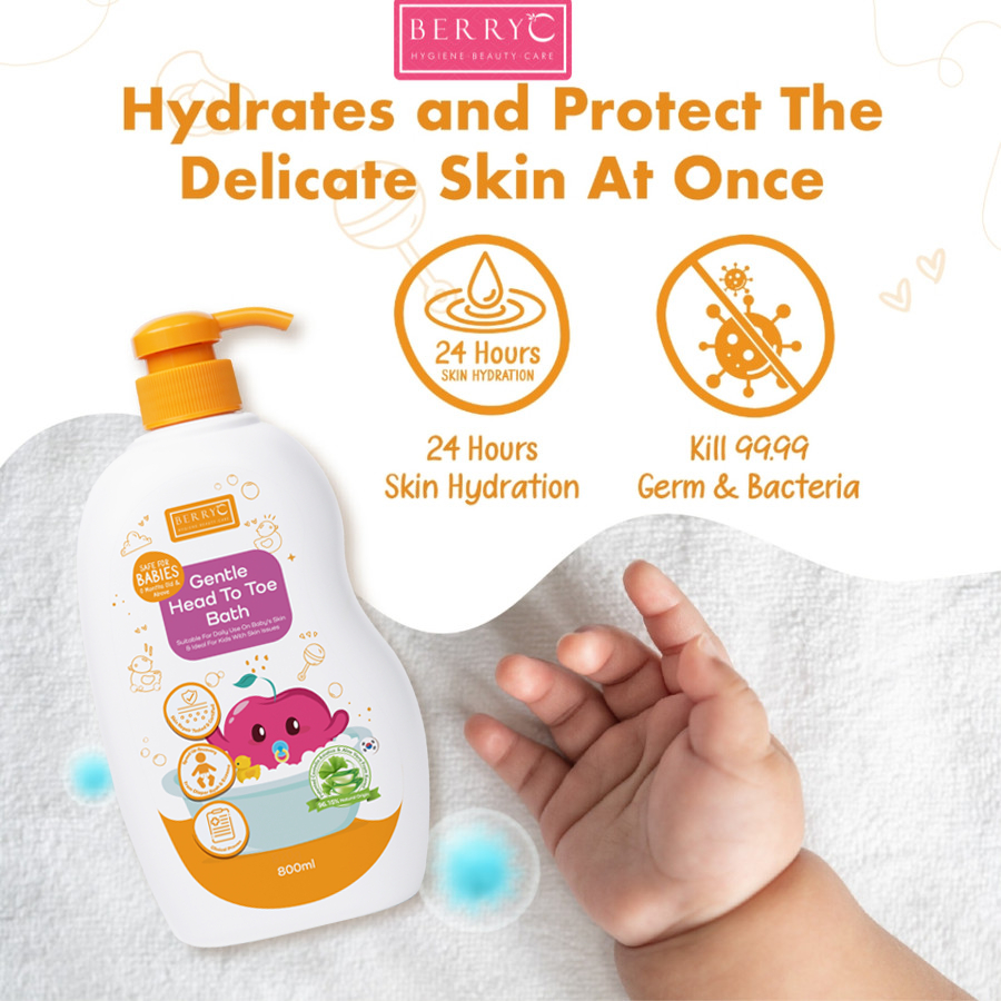 BerryC Gentle Head to Toe Wash Baby 200ML 800ML Body Wash Shampoo Sabun Cair Sampo Bayi Eczema Anak