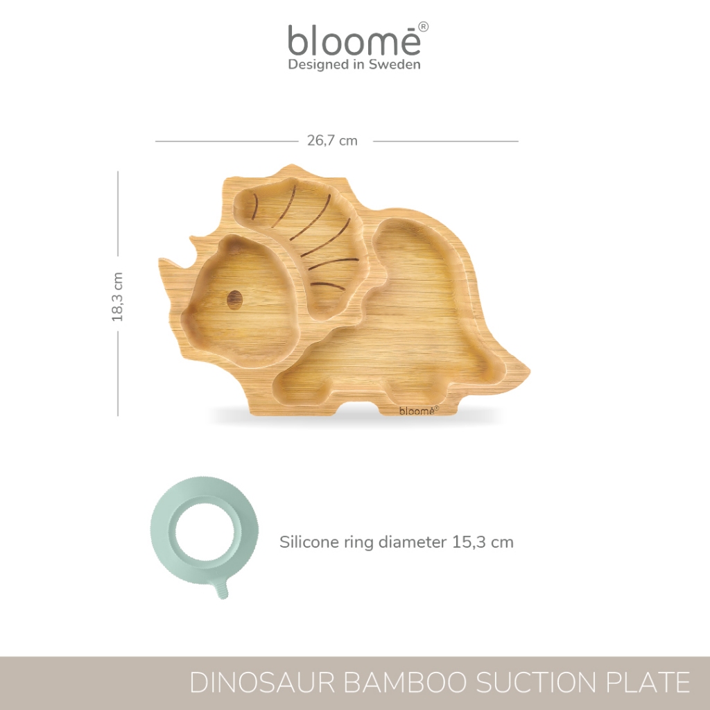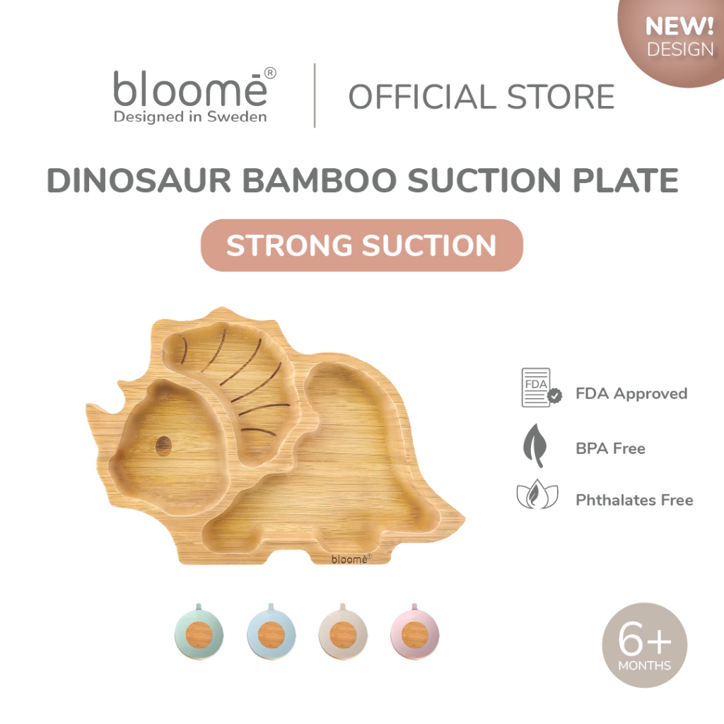 BLOOME – Dinosaur Bamboo Suction Plate For Baby Toddler And Kids | Piring Makan Dinosaurus Bambu Bayi Premium