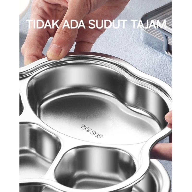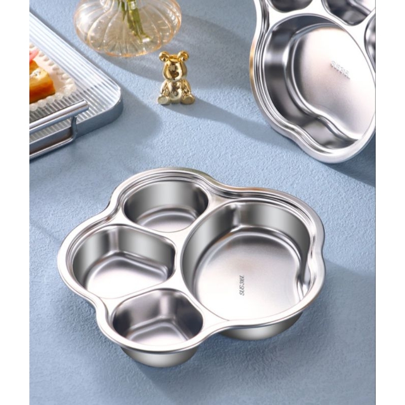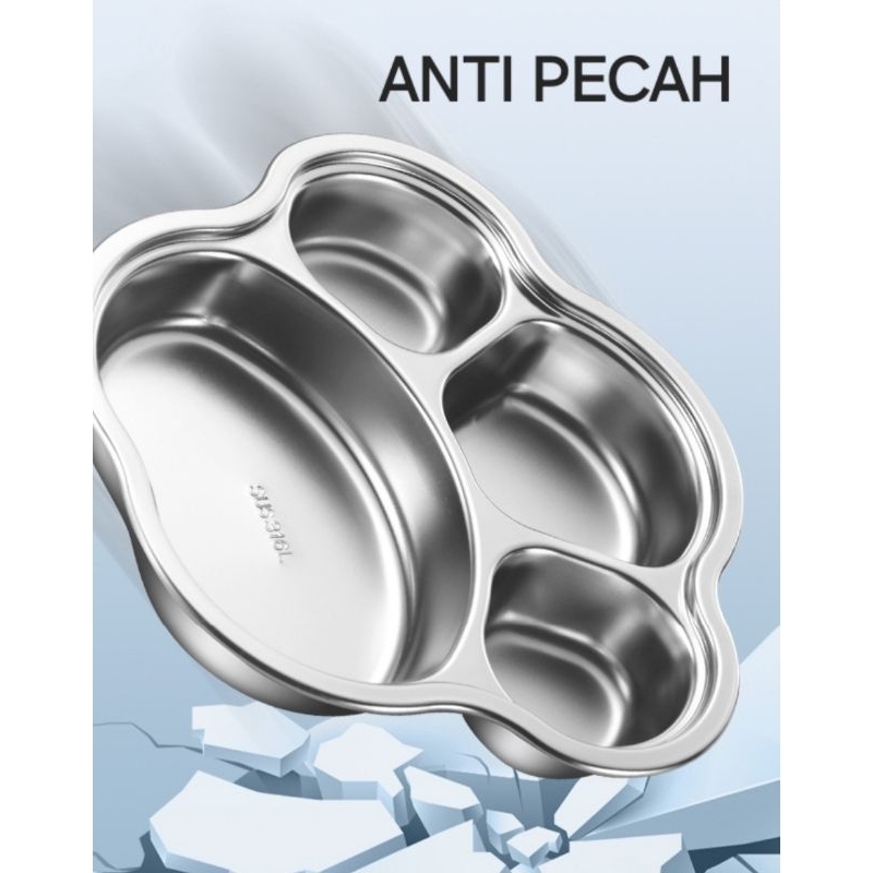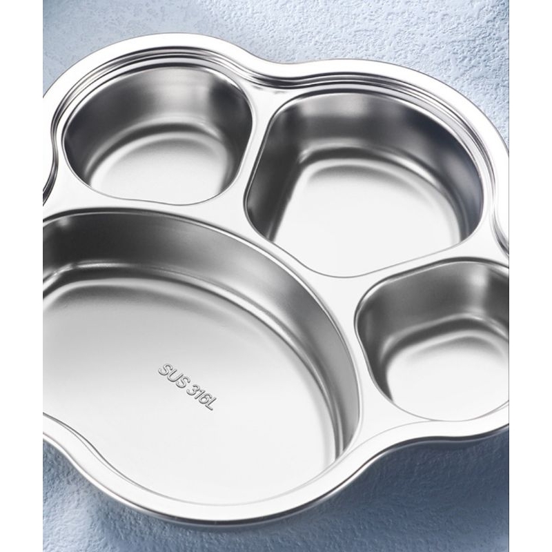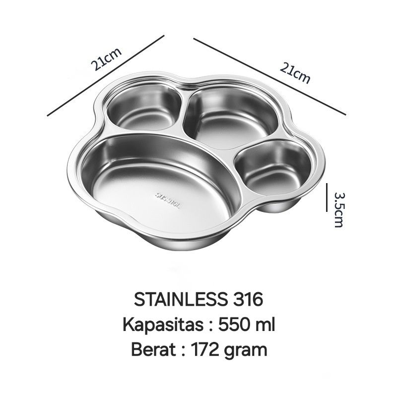 Piring makan anak stainless steel SUS 316 sekat 4 bentuk kaki hewan
