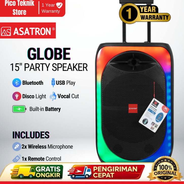 Speaker Bluetooth Party Asatron Globe 15 Inch Gratis Ongkir