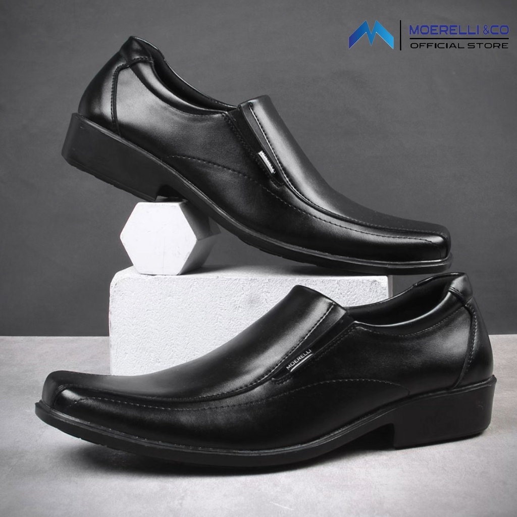 MOERELLI &CO Madelca M7110 Full Blck | Sepatu Pantopel Pria Formal Hitam Kerja Kantor