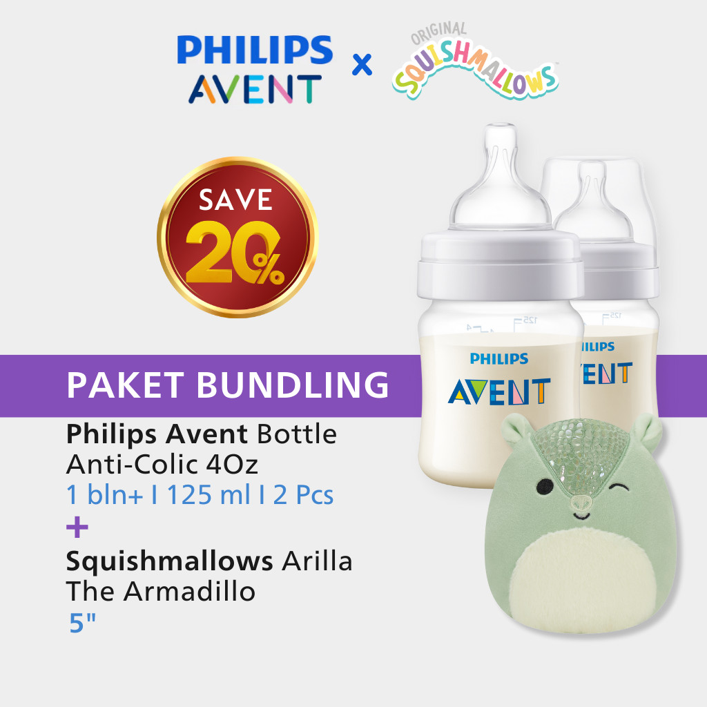 Bundle Philips Avent Bottle Anti-Colic 4Oz (125ml 2 pcs) - Botol Susu Bayi SCY100/02 2P+5" Sq Arilla The Armadillo