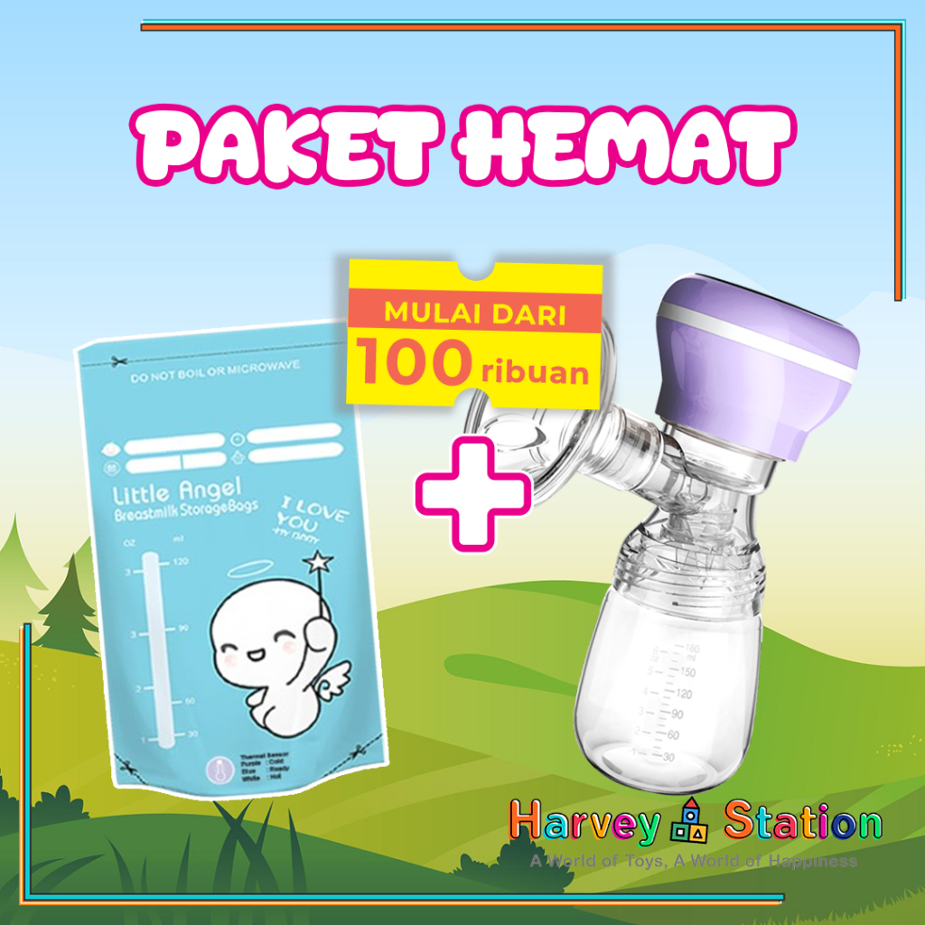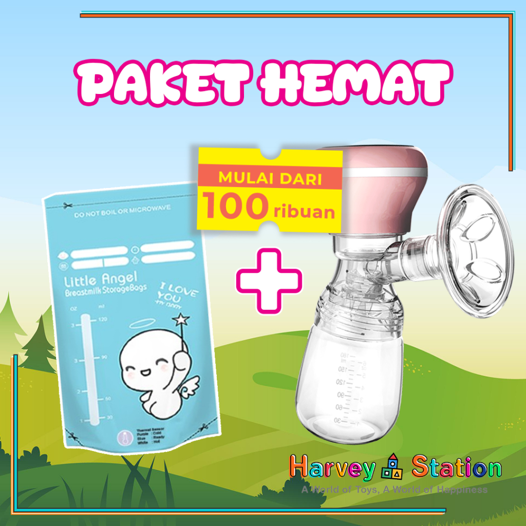BUNDLING Little Angel Pompa Asi Breast Pump + Kantong Asi Susu Bayi 120ml accessories Accessories
