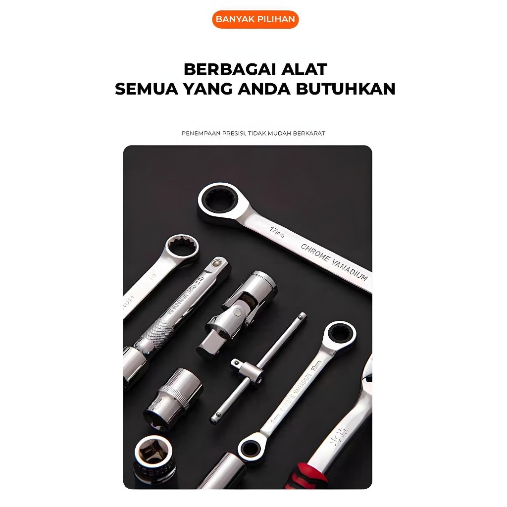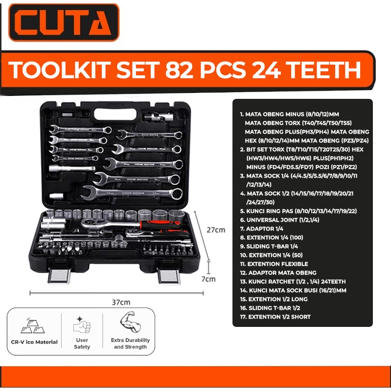 CUTA Toolkit Set Kunci Sok Set Socket Set Kunci Ring Pas Set Tool Kit Set Mata Sok Lengkap 1/2 Inch