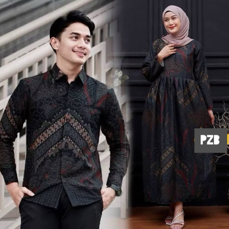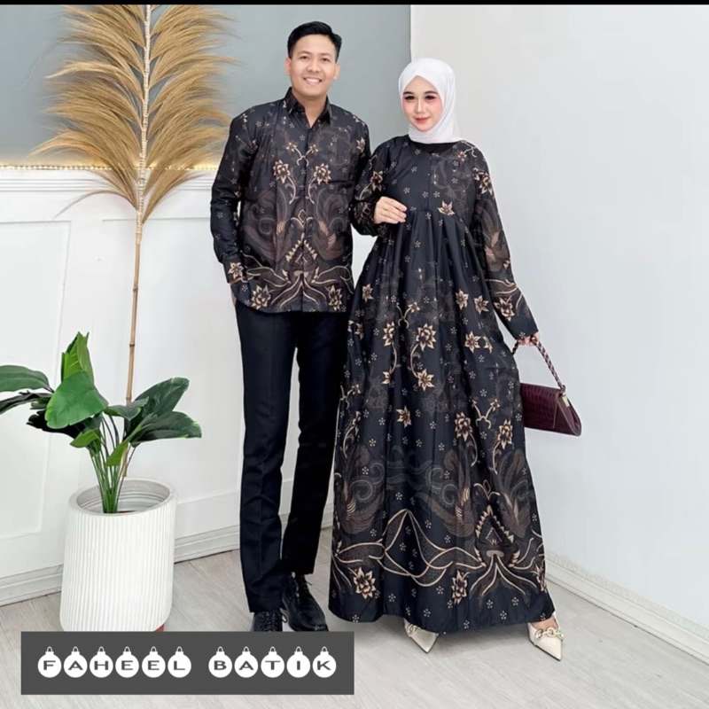 FAHEEL- BATIK COUPLE KEMEJA PANJANG GAMIS MAXI TALI SAMPING MOTIF BATIK