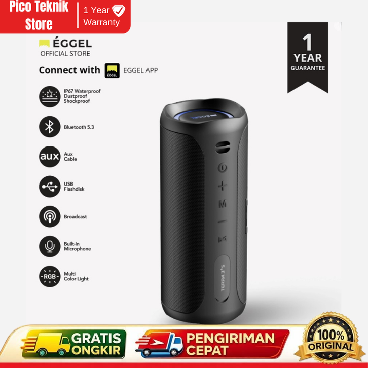 Speaker Portable Bluetooth with RGB Light Eggel Terra 3 Plus S Waterproof Gratis Ongkir