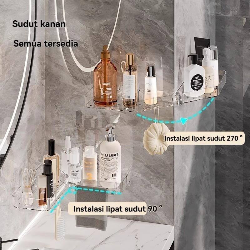 MEITAITAI Rak Toilet Putar Rak Serbaguna Rak Sabun Sudut Kamar Mandi Tempe Rak Kamar Mandi Sudut Transparan