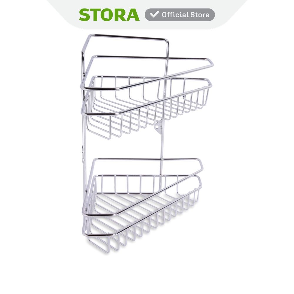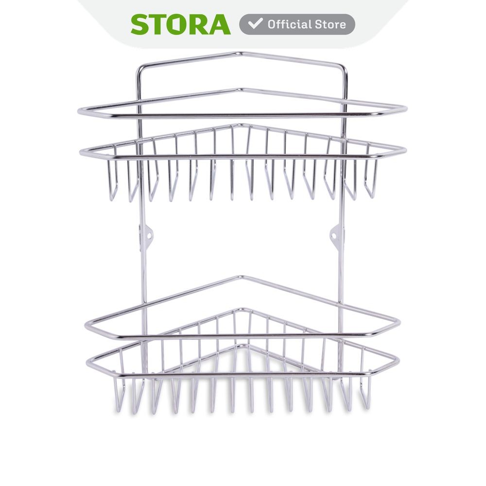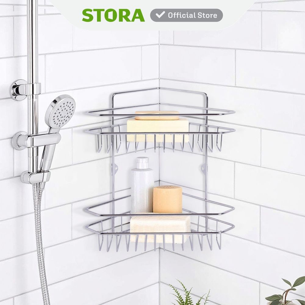 Stora Rak Sudut Kamar Mandi 2 Tingkat Shower Caddy Shower Wall Shelf Corner Rak Tembok Serbaguna Aksesoris Kamar Mandi F