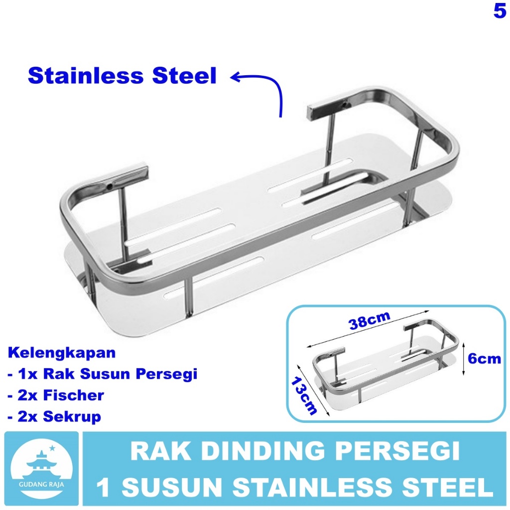 Rak Kamar Mandi Stainless Anti Karat Persegi Kotak Tempel Dinding Rak Sudut 1 2 Susun Tembok Stenlis