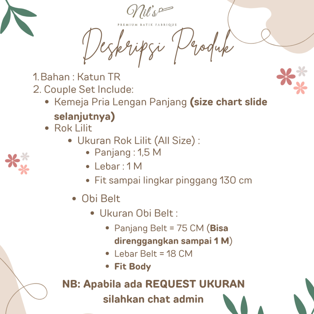 SET COUPLE KEMEJA BATIK LENGAN PANJANG PRIA DAN ONESET ROK LILIT OBI BATIK BAWAHAN KEBAYA / SARIMBIT COUPLE PASANGAN KONDANGAN / SET PAKAIAN COUPLE KONDANGAN TUNANGAN / SERAGAM KELUARGA