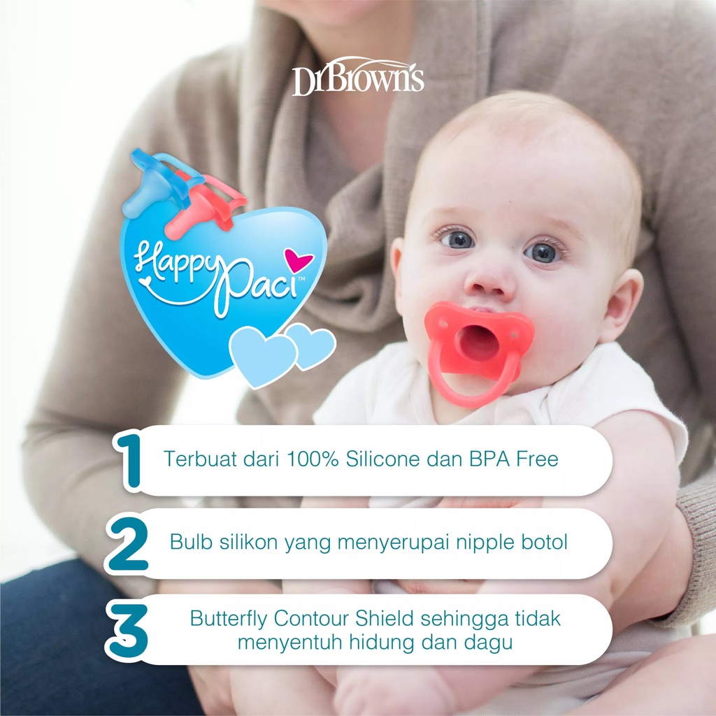 Dr. Brown's Happy Pacifier Silicone Blue - Dot Bayi (Biru)