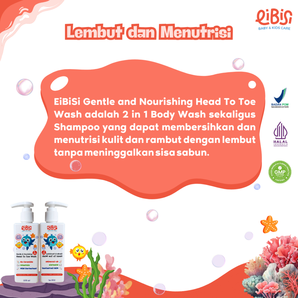 EiBiSi Gentle & Nourishing Head to Toe Wash 2 In 1 Body Wash & Shampoo - Sabun Pembersih Badan Dan Perawatan Rambut Bayi & Anak