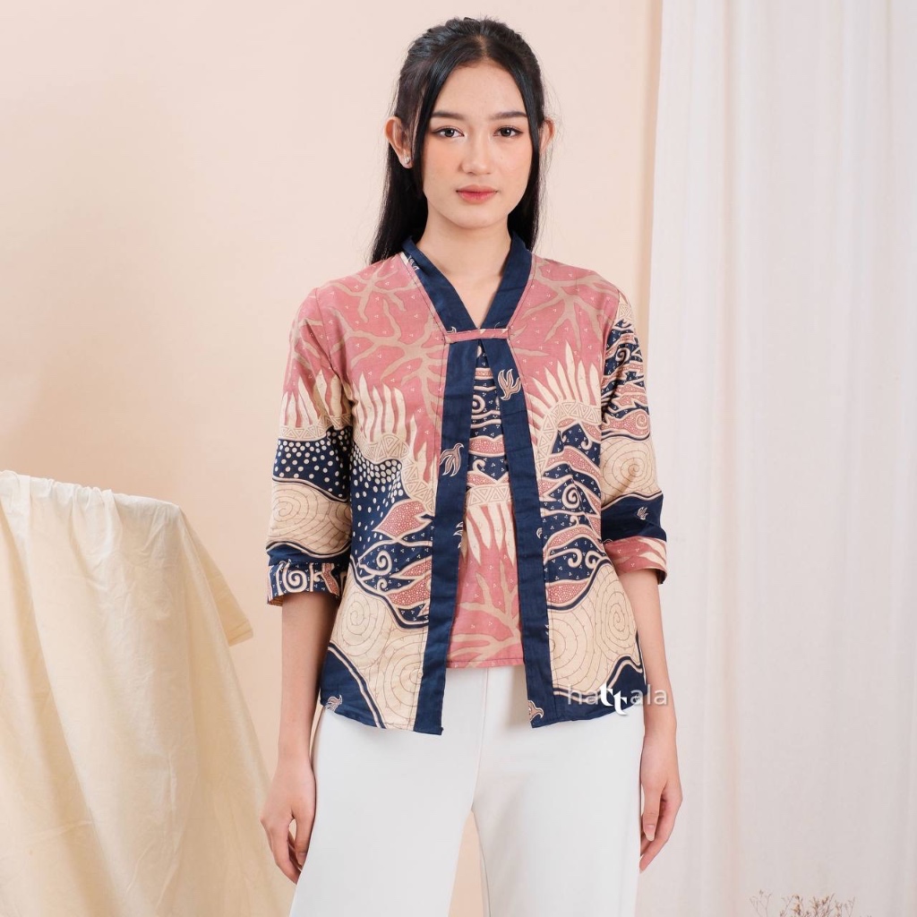 HATTALA — ATASAN BATIK WANITA [BAHAN KATUN] — RUMPUT LAUT SERIES — BLOUSE BOLERO KEKINIAN RESLETING BELAKANG