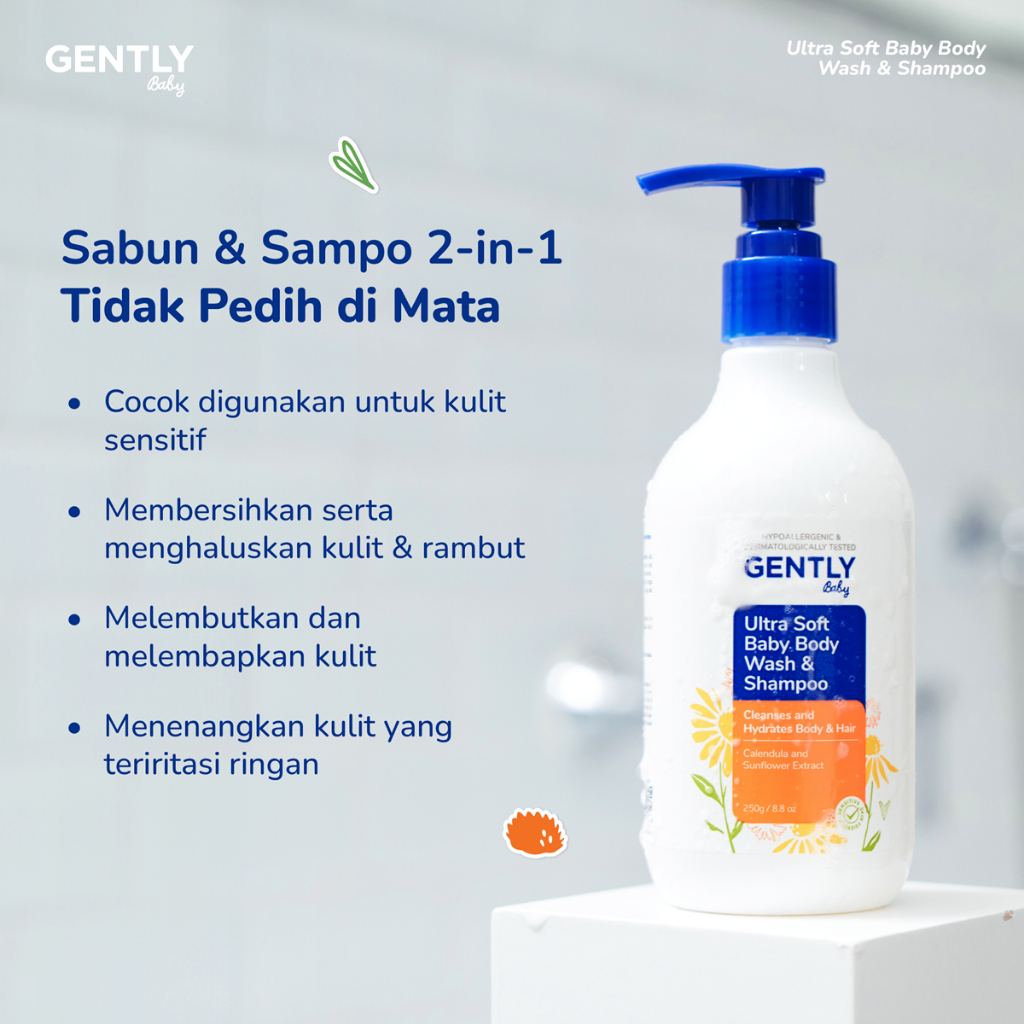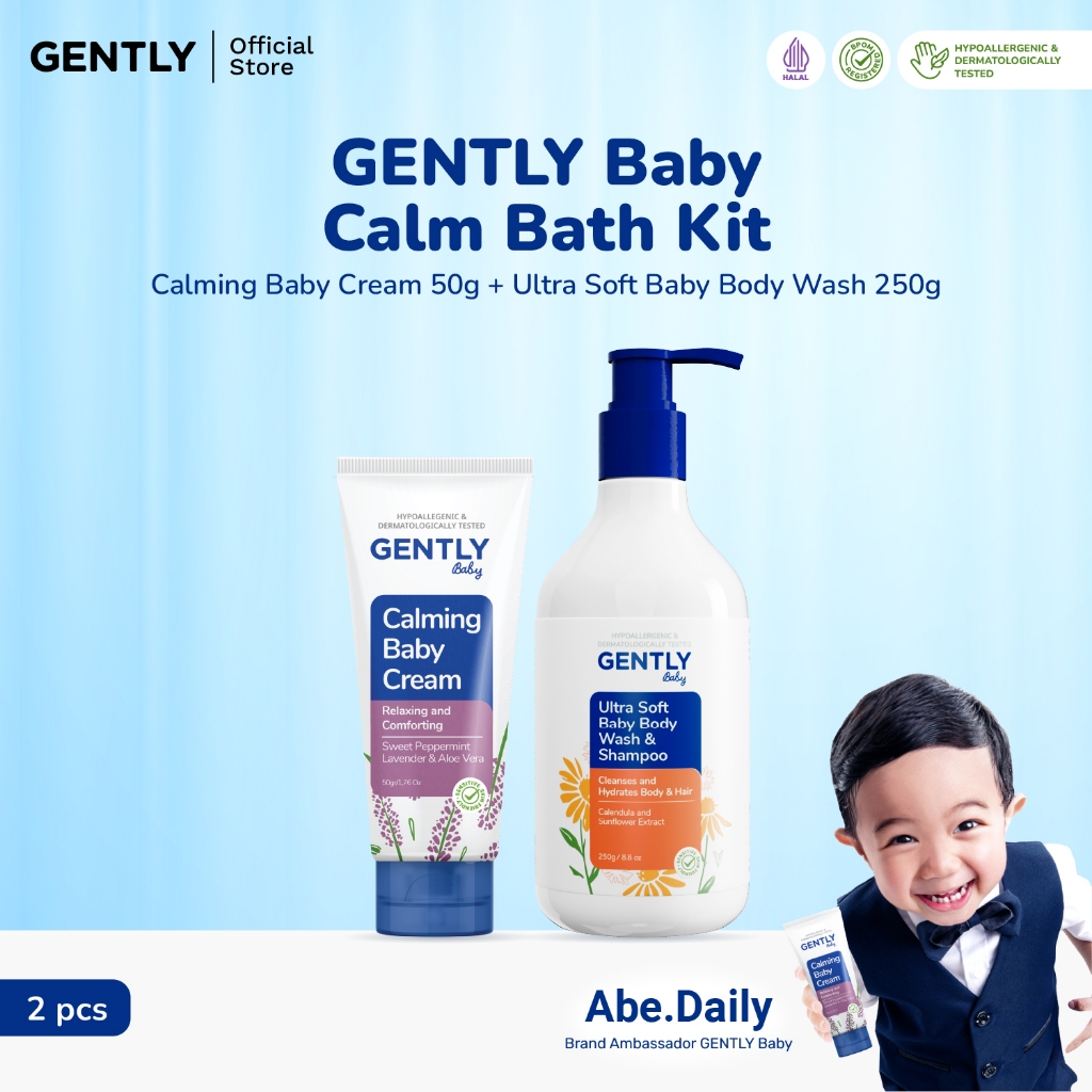 GENTLY Baby Calm Bath Kit | Paket Calming Baby Cream 50 g Krim Bayi Nyaman untuk si Kecil + Ultra Soft Body Wash & Shampoo 250 g Sabun Badan dan Rambut Bayi & Anak Non SLS/SLES