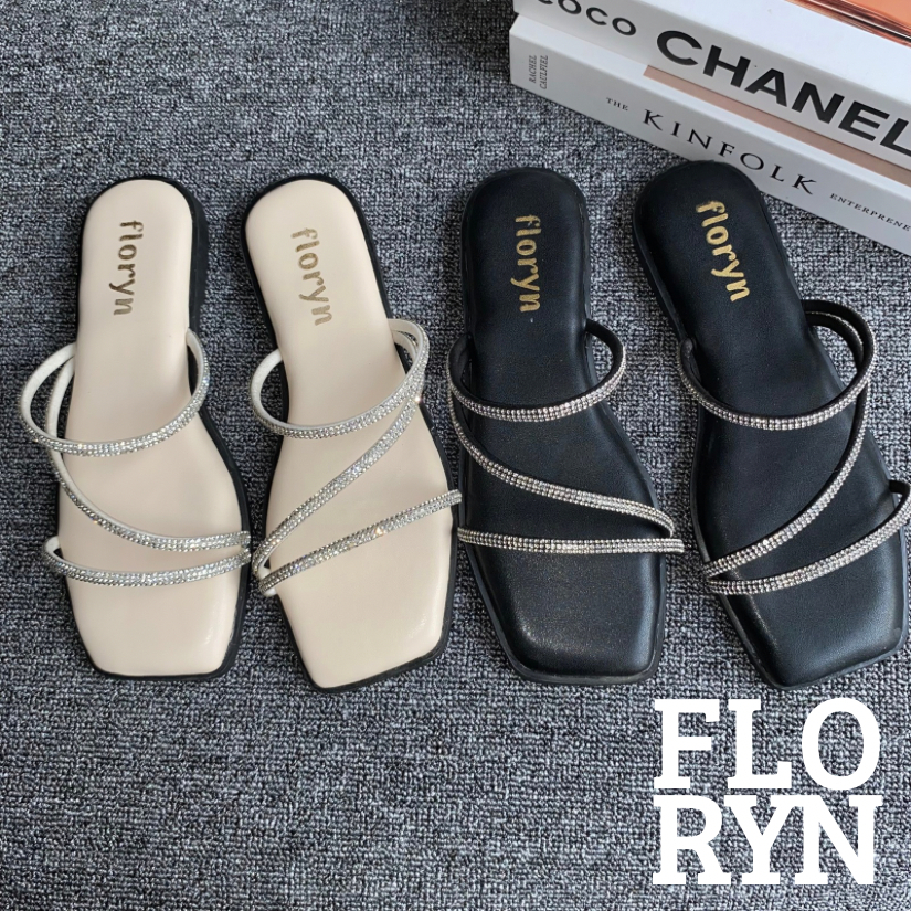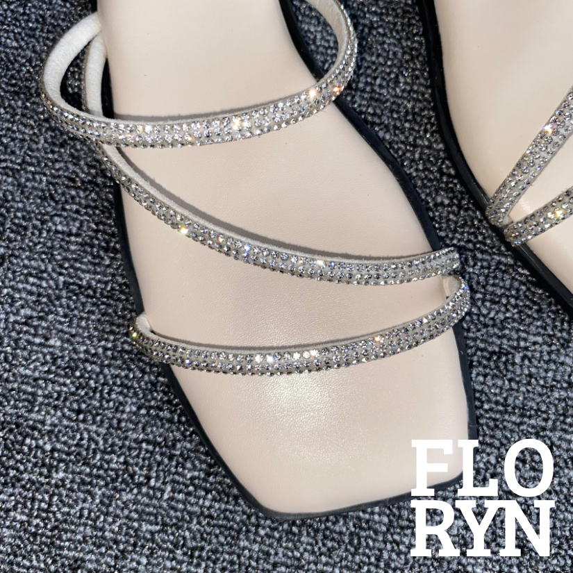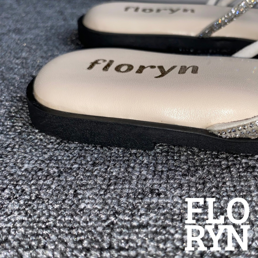 FLORYN SHOES - VELIA Cream Sandal Teplek Wanita Daily Tali Silang Permata Kekinian Elegan Flat Datar